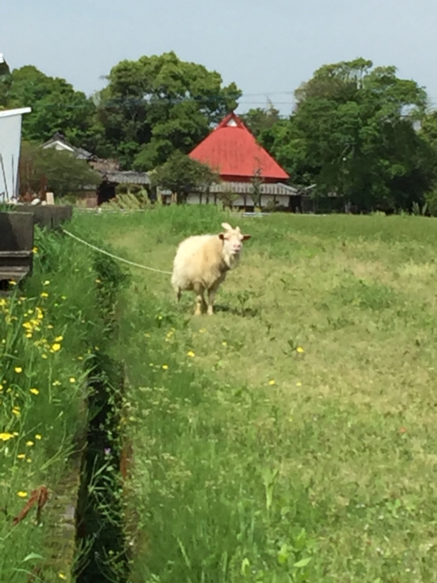 朝鵜家の一員でもあるタロー君のお仕事は、養殖場周辺の草を食べる事。