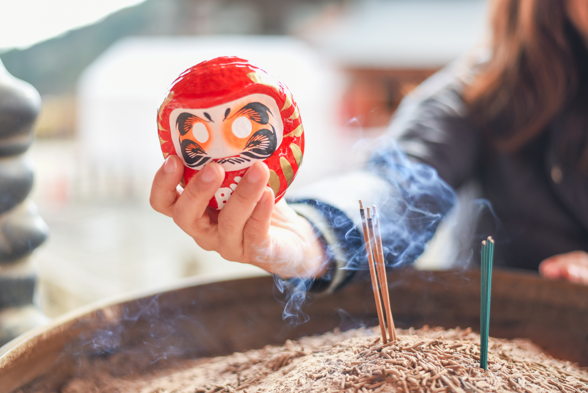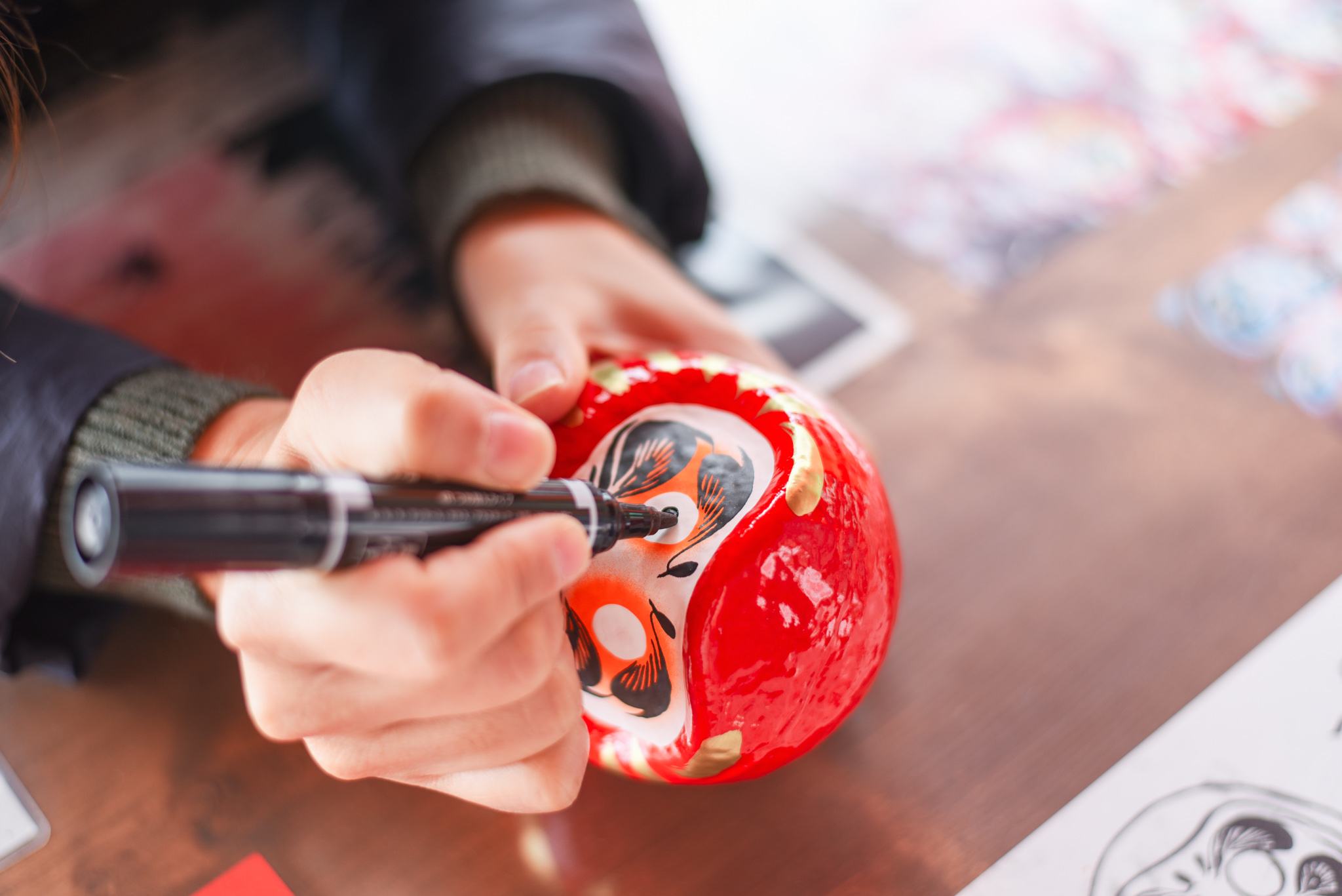 最後に、目標達成のために努力を惜しまないことを自分自身に誓い、ダルマの右目に“目入れ”をします。そしてこのダルマを持ち帰り、願いが叶ったら、ダルマの左目に“目入れ”をして勝尾寺に奉納します。 改めて目標を明確化し、感謝の気持ちを念じることでたくさんの大切な人を思い出させてくれる時間となりました。この想いを閉じ込めたダルマに、今年1年の旅を見守ってもらおうと思います♪
