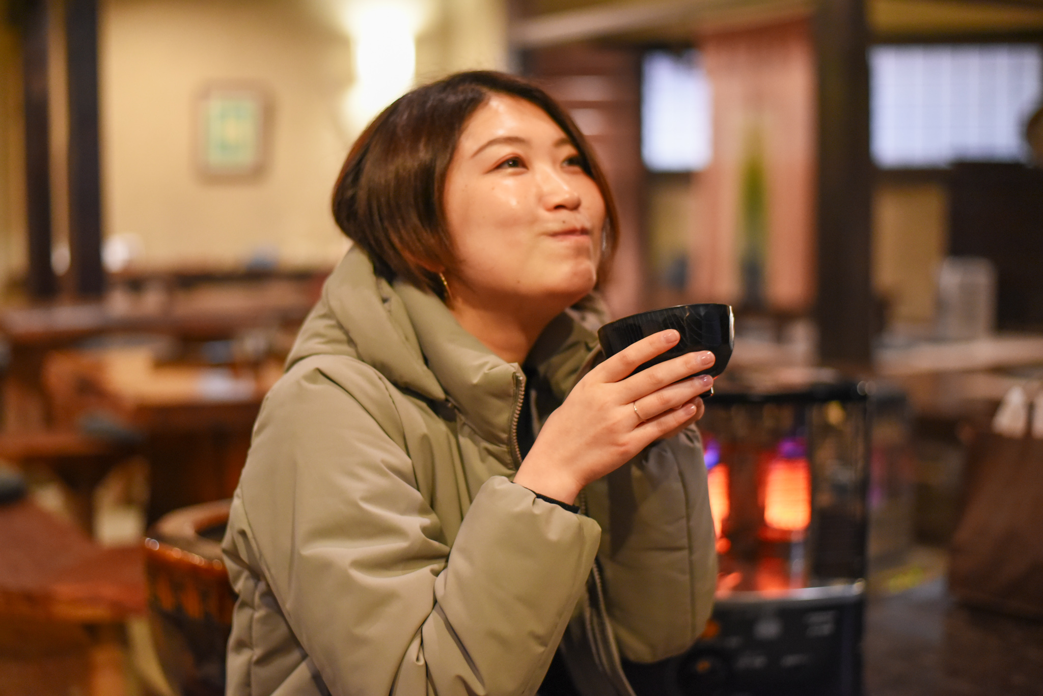 外の寒さに凍えていた池田。温かいお味噌汁でこの幸せそうな笑みです(笑)