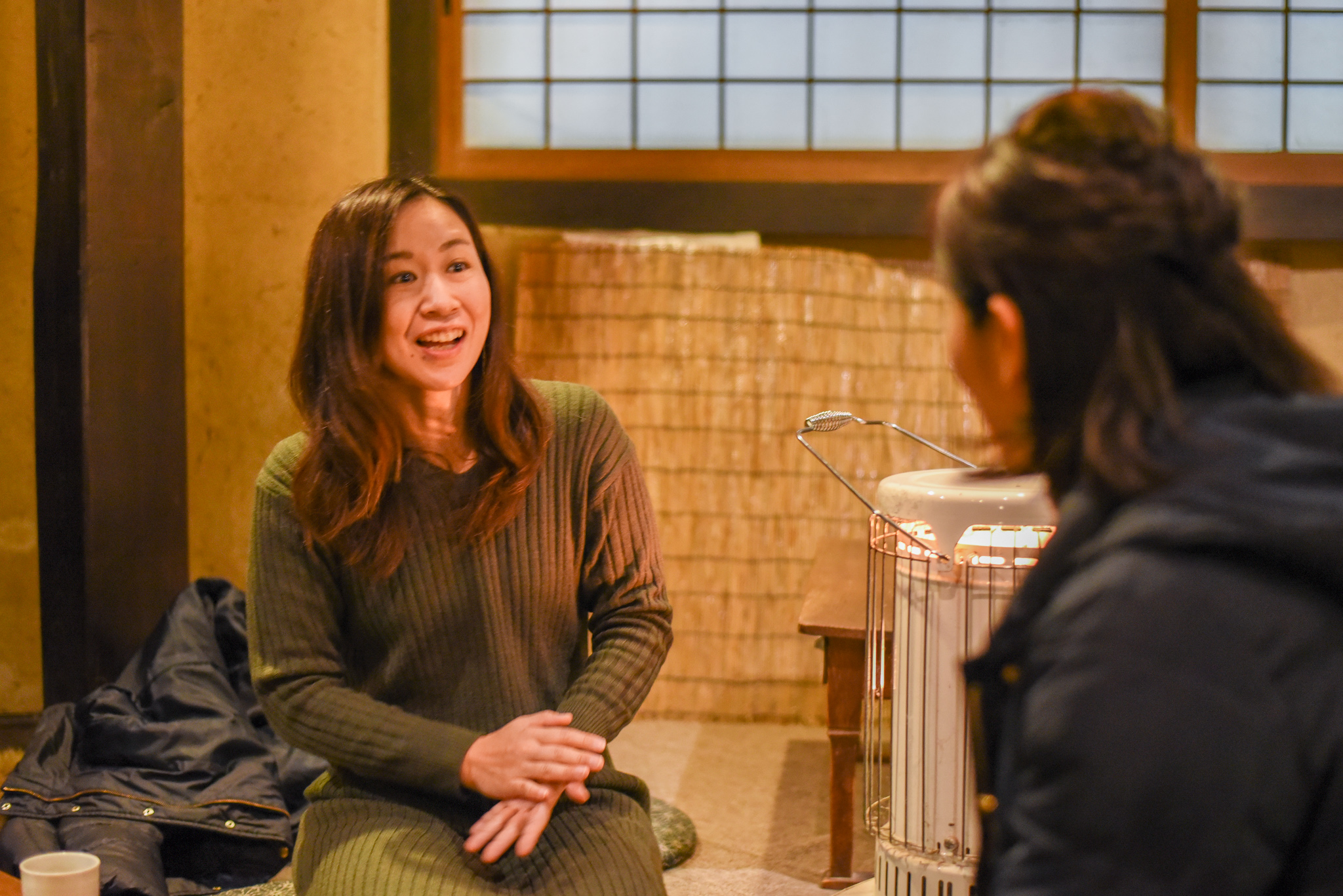 参拝が終わりお腹がすいてきたところで、次に向かったのは勝尾寺から車で約25分。車をおり坂を下ったところで少しずつ見えてきた、かやぶき屋根の歴史的な建物。「まだま村」さまを訪れました。 自然に囲まれ、ここだけが昔にタイムスリップしたかのよう。囲炉裏の炭がパチパチと音を立てて、ゆっくりとした時間を感じます。