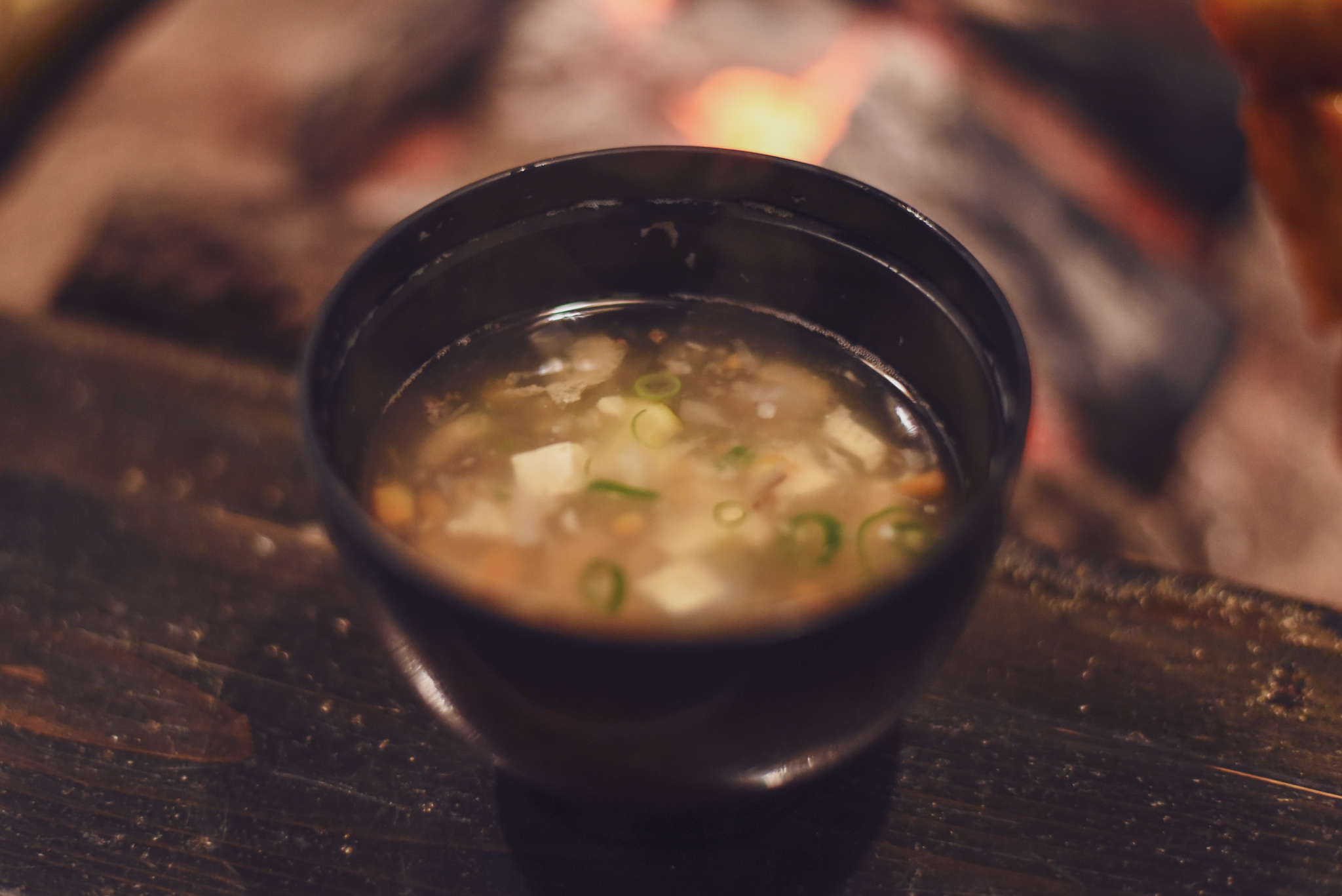 はっ!!ということはカギについていたのは…!おでんではなくて“でこまわし”だったんですね(笑)“でこまわし”は上からそば団子、豆腐、こんにゃくだそう。自家製の柚子味噌がたっぷりぬってあり、香ばしいにおいが空腹を加速させます!!いただきます☆