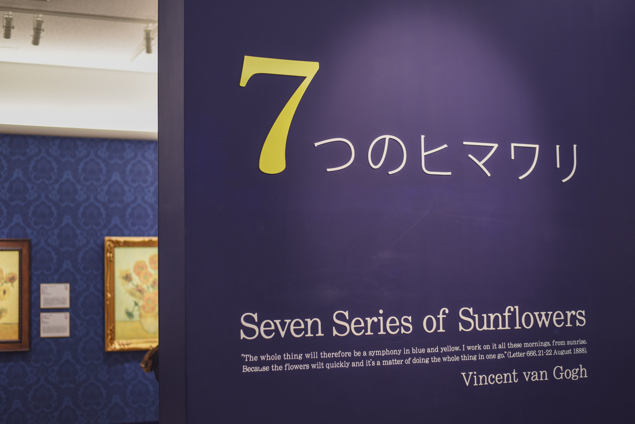 ゴッホの『ヒマワリ』です。ここでは花瓶に入った7つの『ヒマワリ』をすべて見ることができます。この場所は良い香りが…!ヒマワリをイメージしたアロマオイルで、ますます絵の世界に入り込んでしまいます。作品に優しく触れるのは大丈夫ということで、触れてみました。しっかり絵の具の感触も感じます。ゴッホはヒマワリを太陽に見立てていて大好きだったそう。花瓶の『ヒマワリ』はゴーギャンを向かえるためにという理由で描いたとされています。
