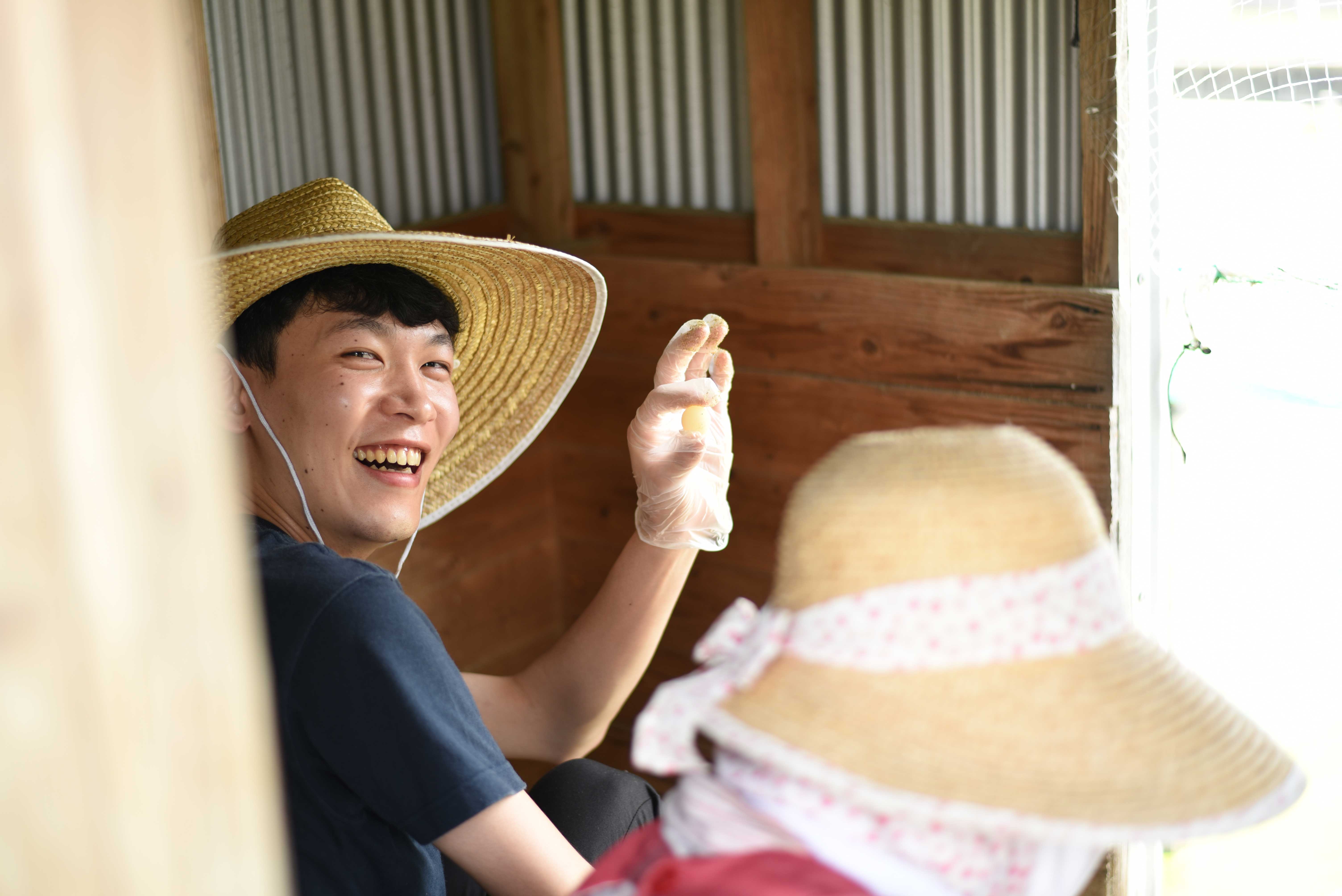 ちょうど産卵時期だったので、私たちも収穫部屋で早速卵探しを体験させてもらいました。