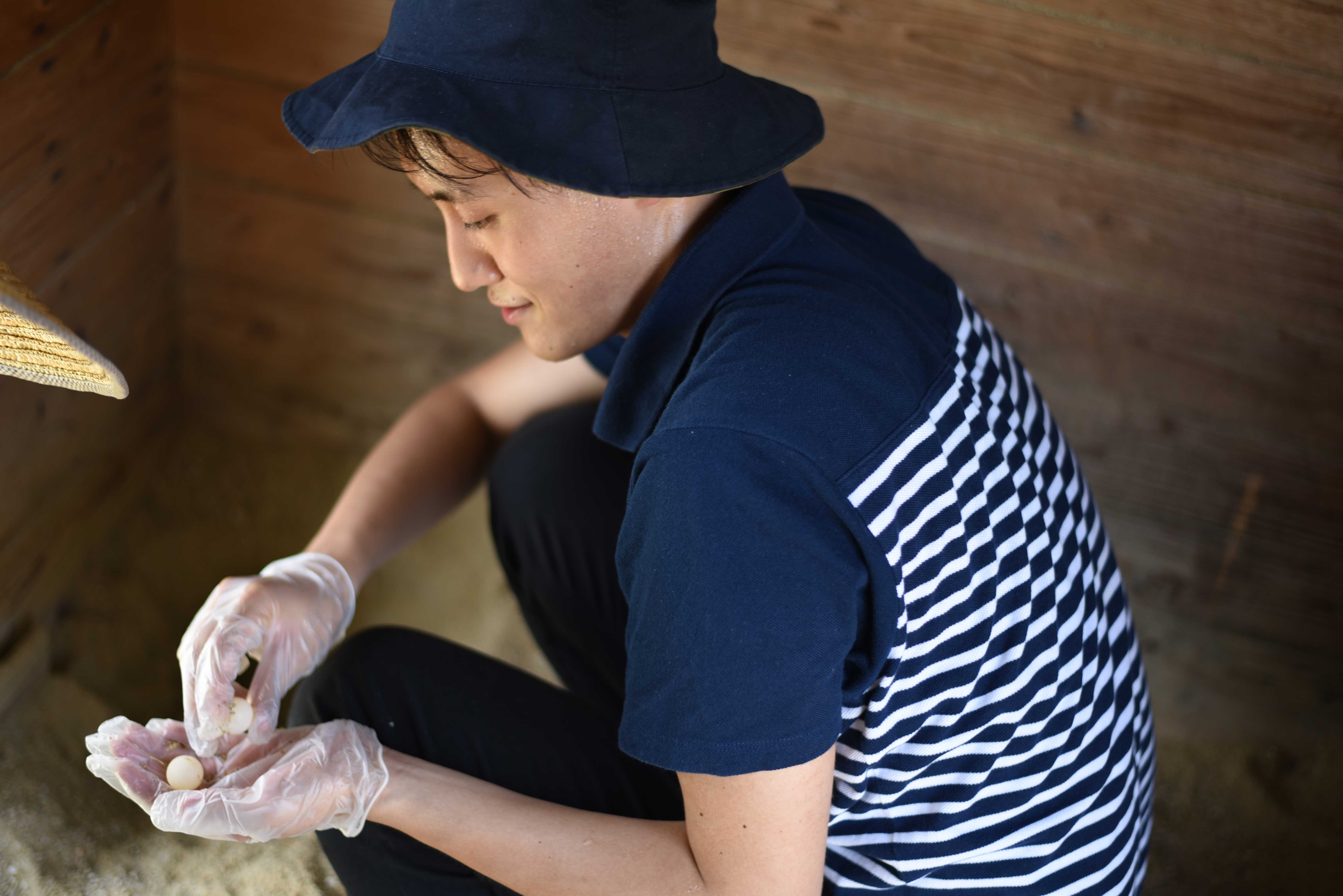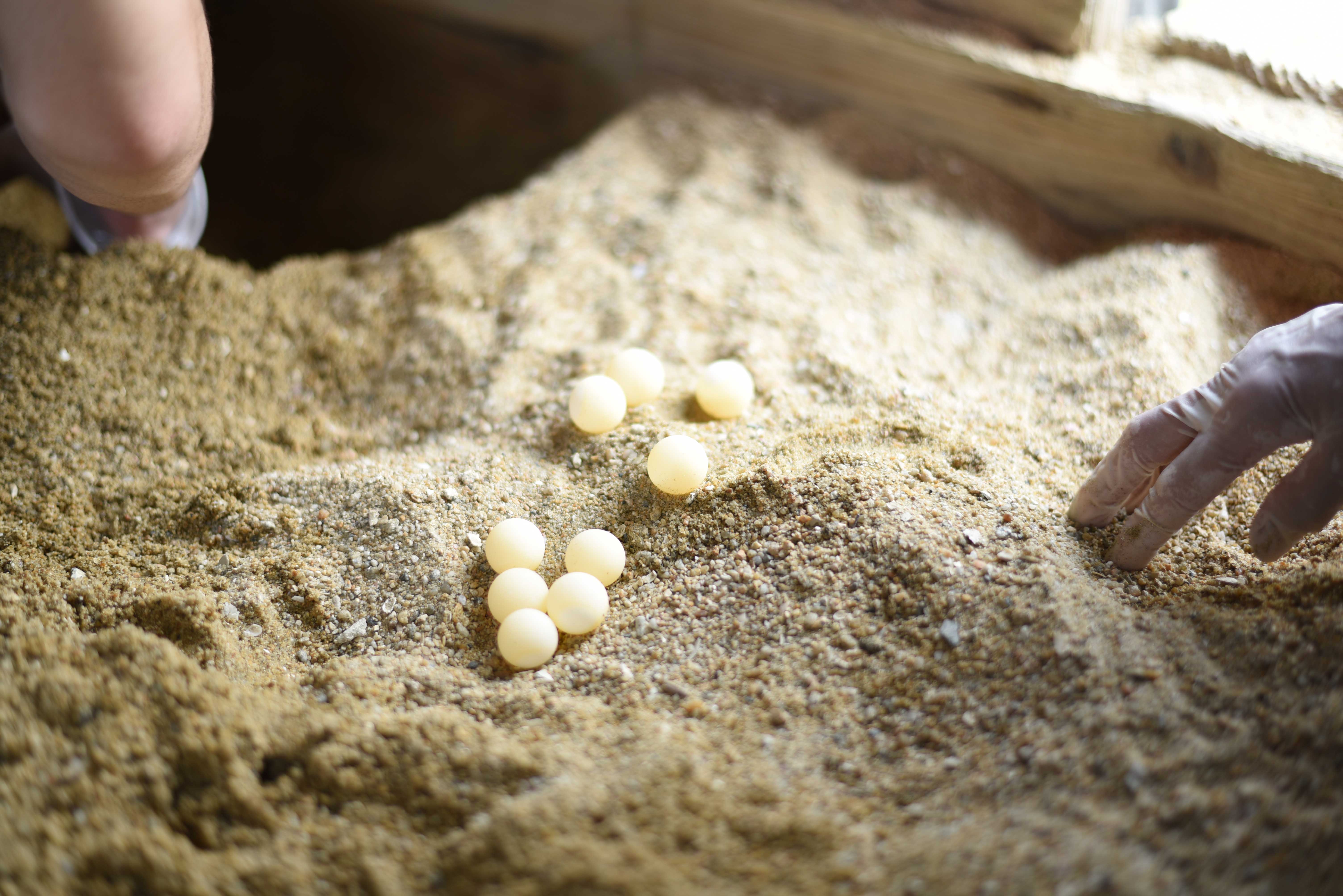砂の中から見つけた卵は、想像以上の小ささに驚きました。割れてしまわないか不安になりましたが、触ってみると殻はしっかりとしていました。