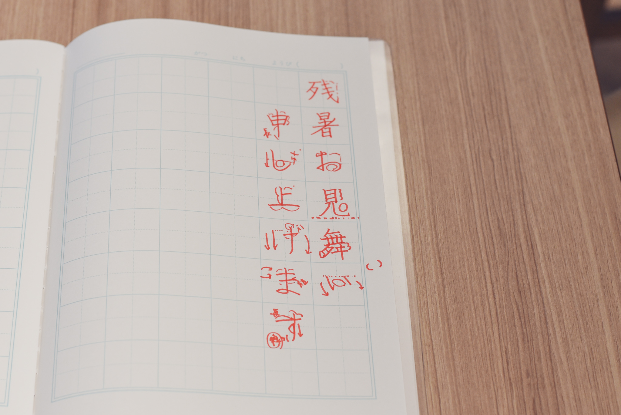 マス目のノートで練習するとバランスがとりやすくなります。