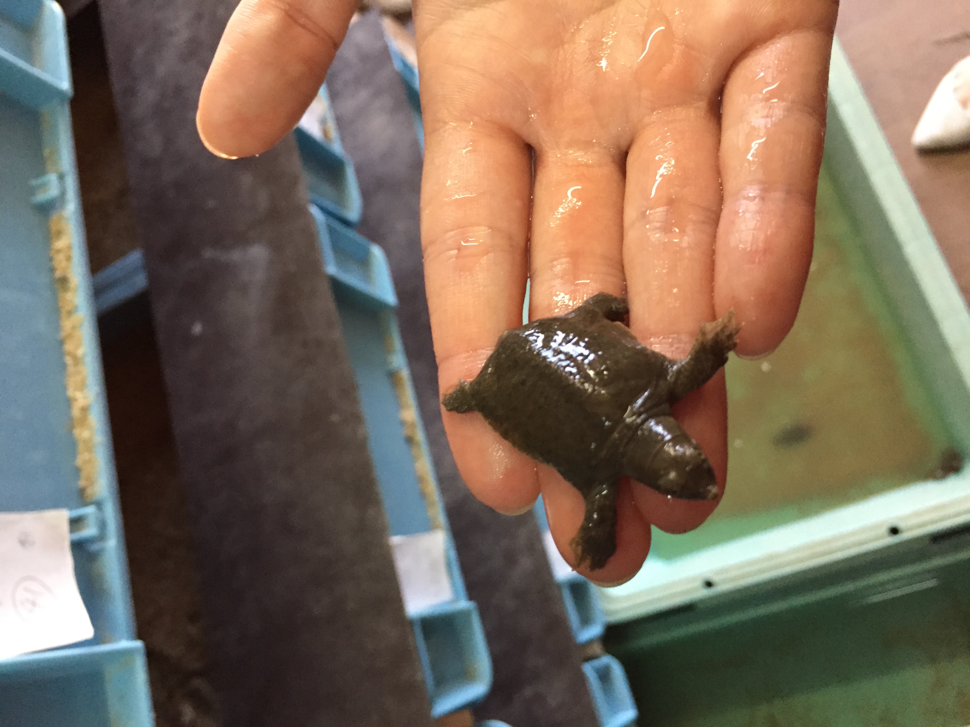 訪れたこの日は赤ちゃんすっぽんがたくさん誕生していました!見て下さい!産まれて数時間の赤ちゃんすっぽんです!