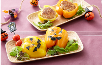 ジャックオランタンの肉詰めパプリカ