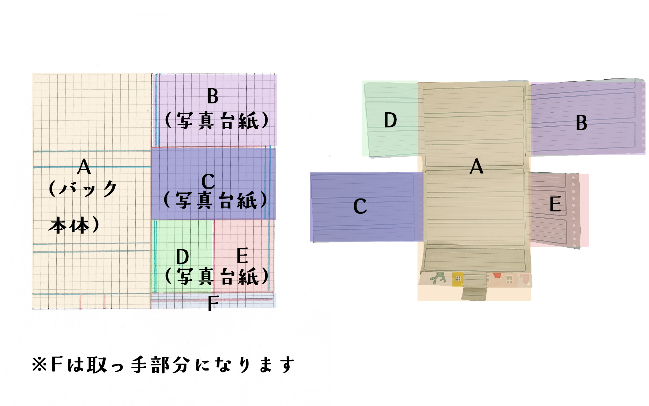 ④ 切り取った後はそれぞれの場所にいったんおいていき、貼る位置を確認してからのりで貼っていきます。