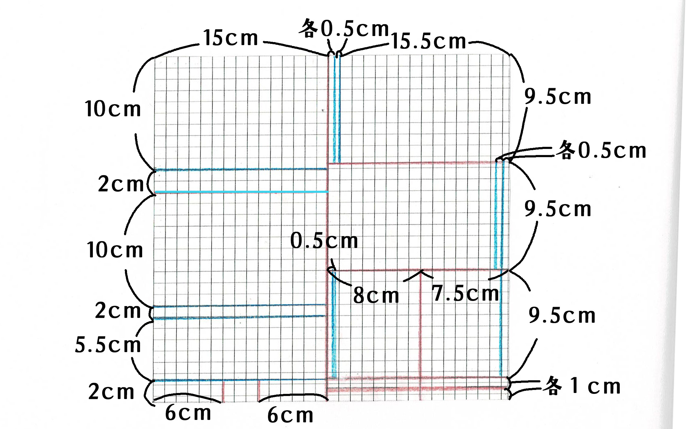 ① すべての線に折り線をつける。