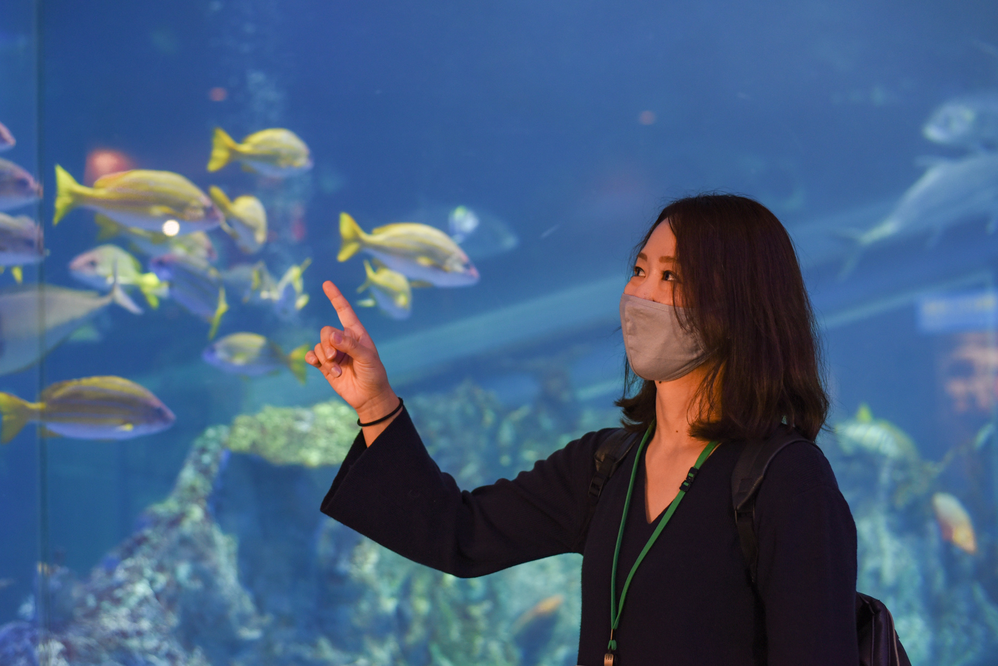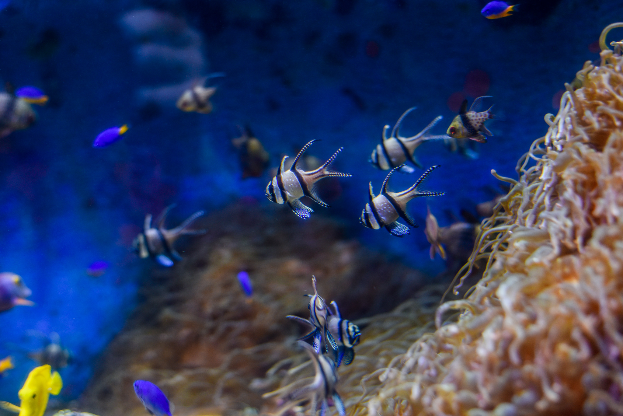 まずは熱帯の海を表したコーナーへ。カラフルな熱帯魚たちがお出迎えです♪前面ガラスの水槽があり、まるで海の中をダイビング!