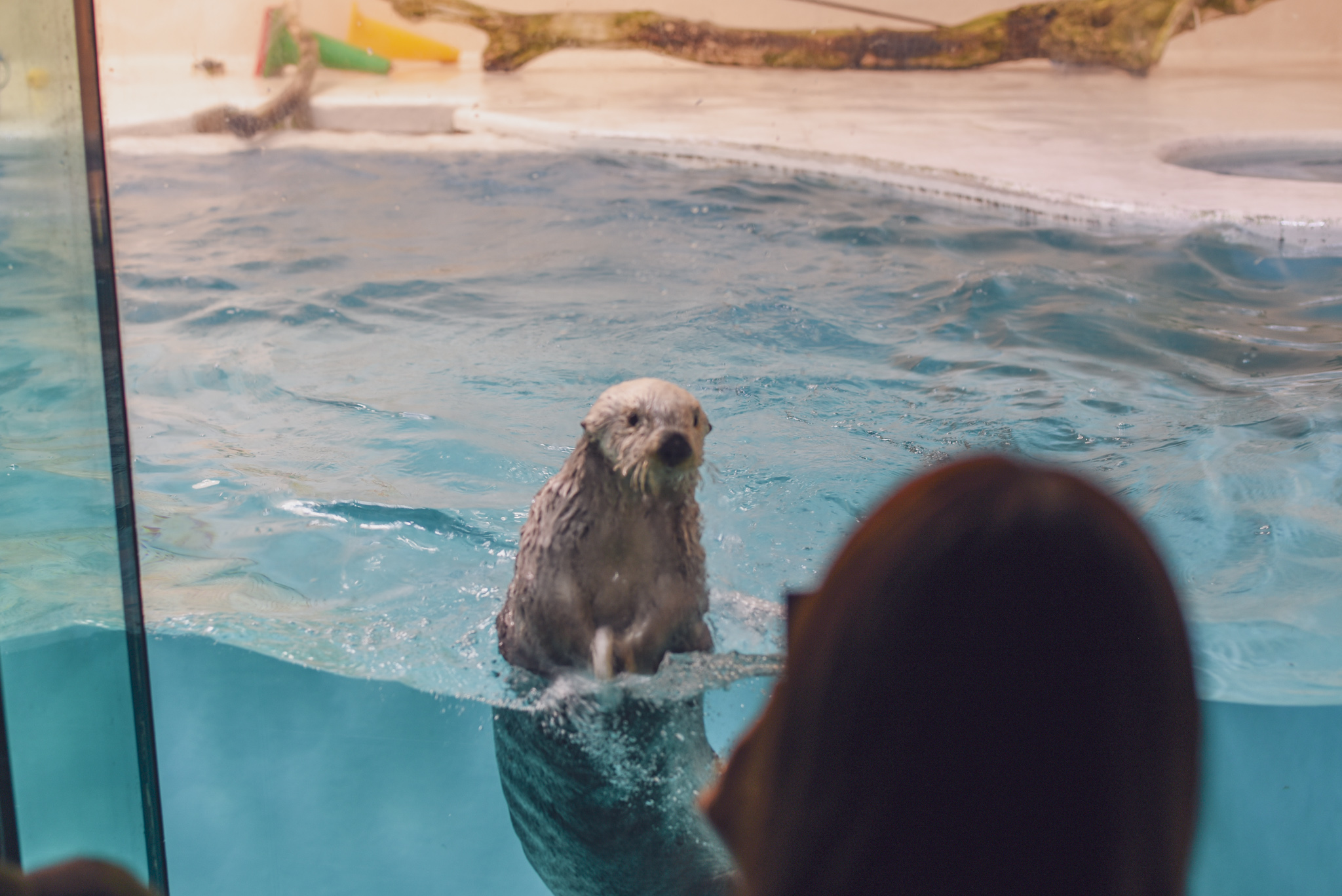 次はきっと日本で1番人気のラッコではないかと言われている、ラッコのメイちゃん♪私は実は知らなかったのですが(すみません…)飼育員さんとの掛け合いがとてもかわいいと人気なんです。早速このポーズ!かわいすぎます!!