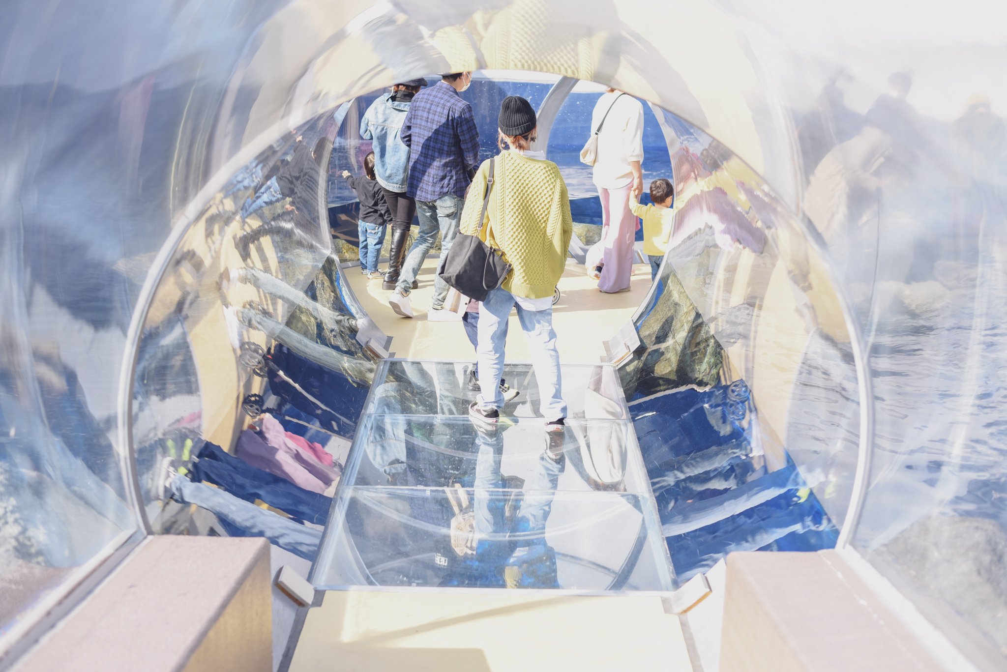 こんな間近で見ることができるのは“水上透明チューブ”のおかげです!世界初だそう!アシカやアザラシのお部屋の中を通っているので、間近で観察することができます♪足元をすい~っと泳いで通り過ぎることも(^^♪