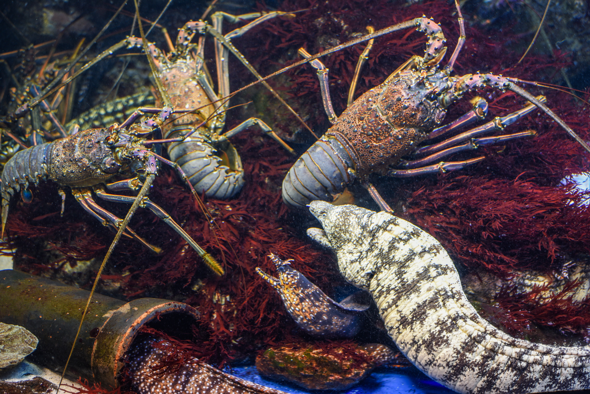 伊勢といえばイセエビ!と…大きなウツボ!?さすが海のギャングといわれるだけあって、なかなかの迫力!イセエビも大きいですね!