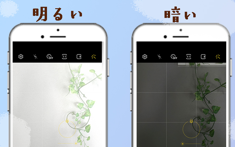 この太陽マークの位置を左右に動かすことで、明るさの調整ができるんです。