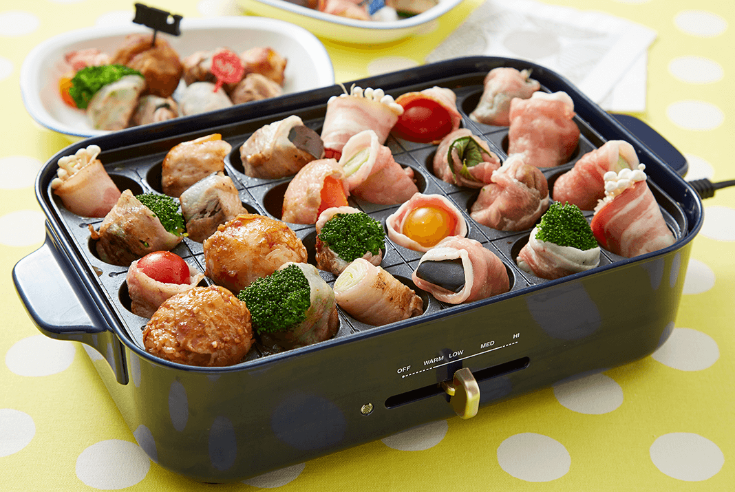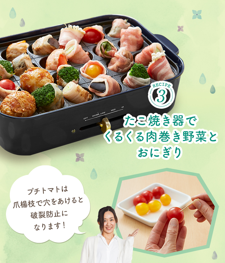 レシピ③ たこ焼き器でくるくる肉巻き野菜とおにぎり