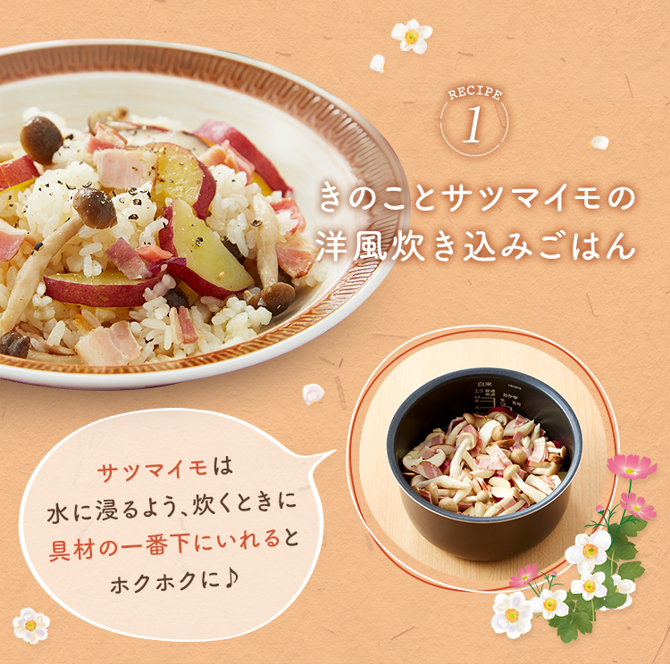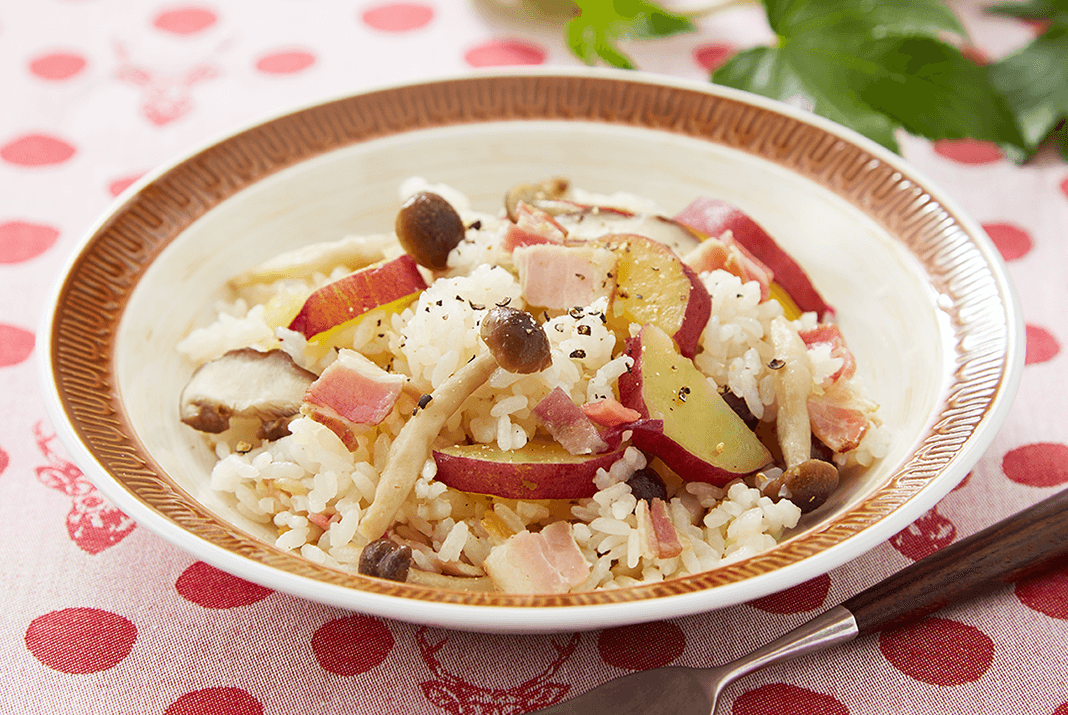 レシピ① きのことサツマイモの洋風炊き込みごはん