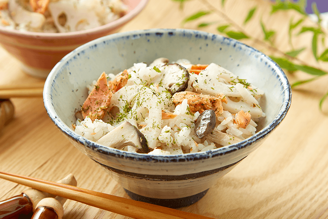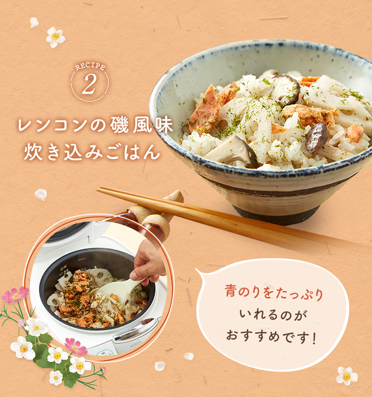 レシピ② レンコンの磯風味炊き込みごはん