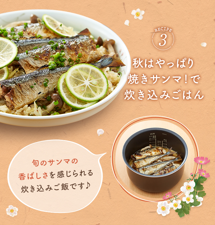 レシピ③ 秋はやっぱり焼きサンマ!で炊き込みごはん