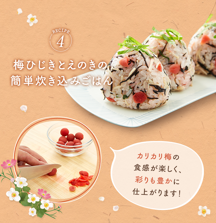 レシピ④ 梅ひじきとえのきの簡単炊き込みごはん