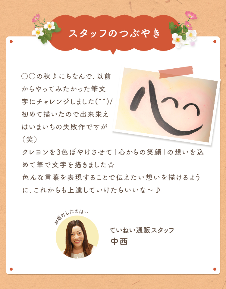 こんにちは♪ていねい通販 尾中です。