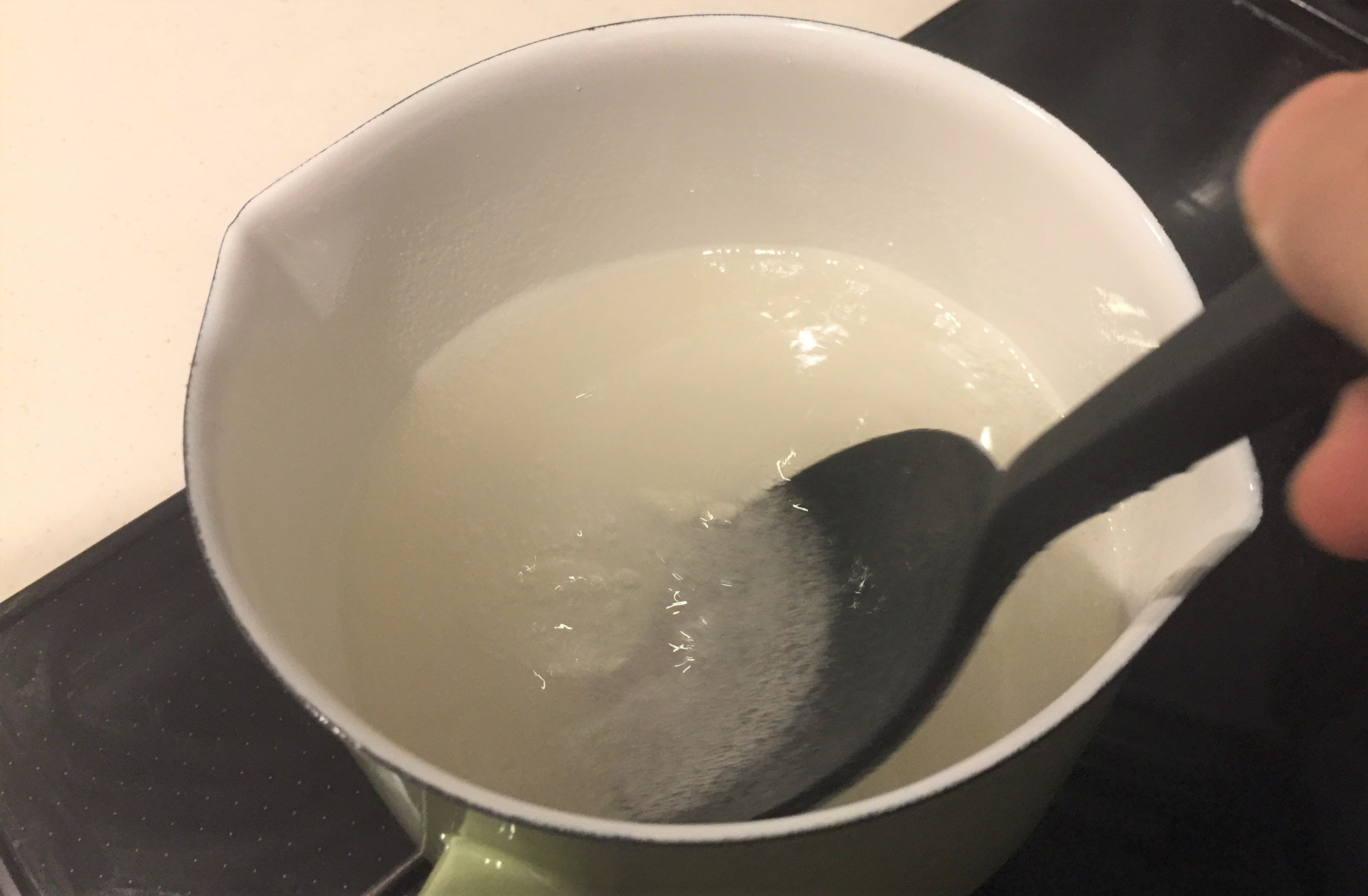 加熱後、時間をおくことで粘度が高くなり、色がつけやすくなります。