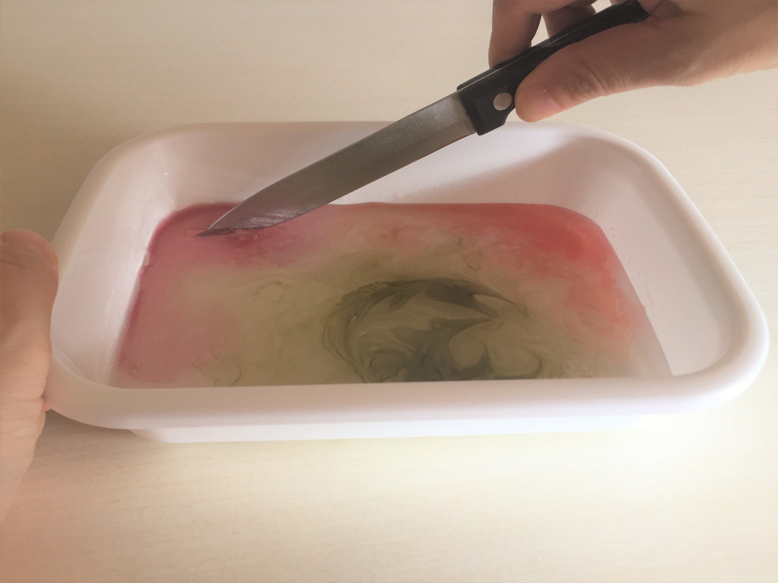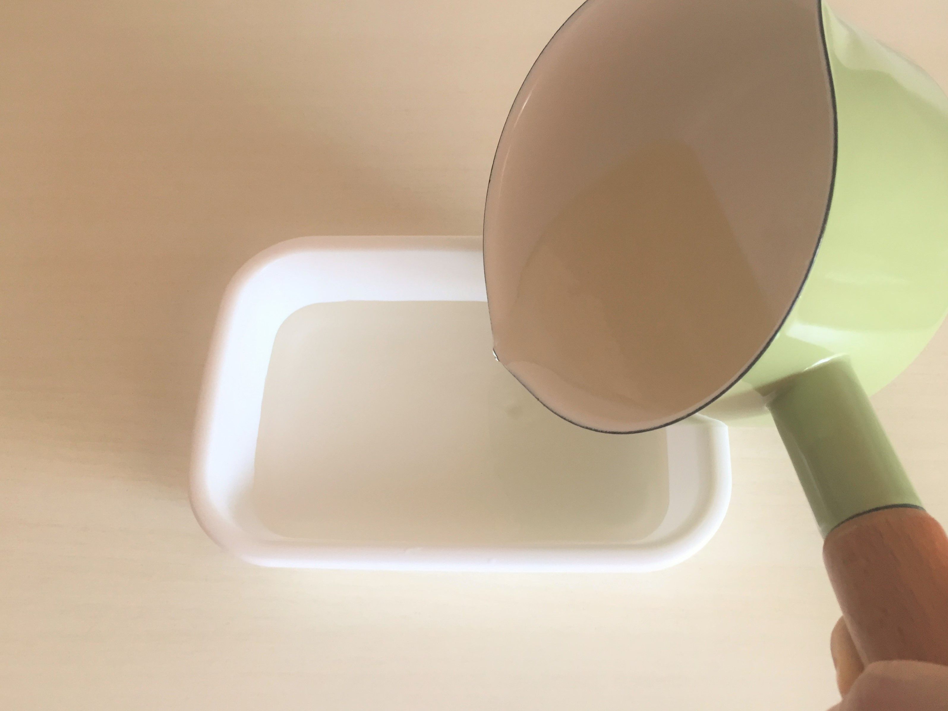 冷蔵庫で1時間ほど冷やします。かたまったら包丁で好きな大きさに切り分けます。