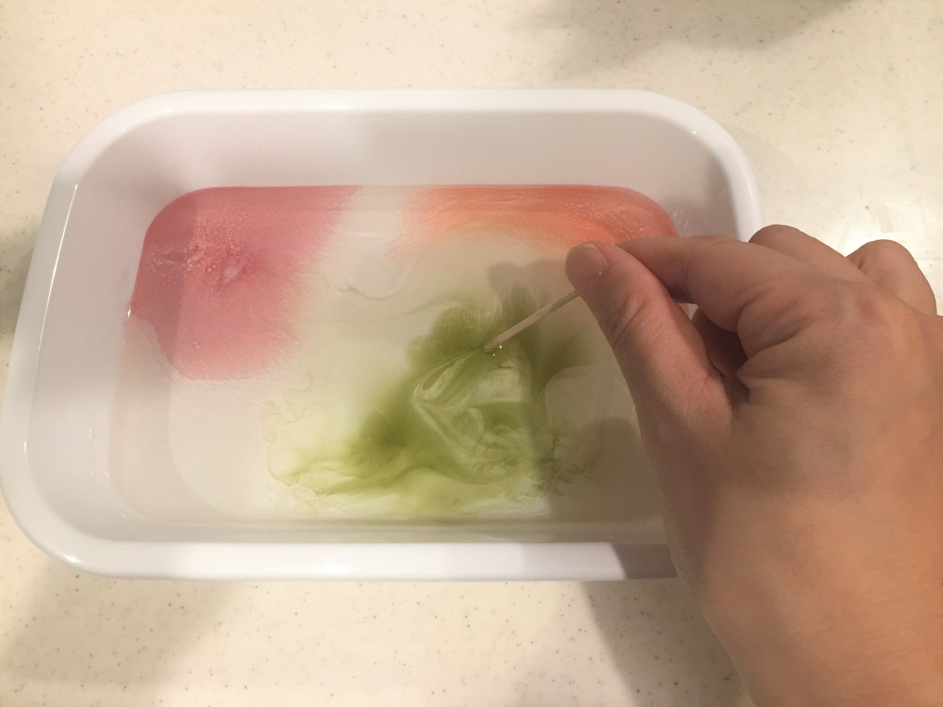 5分ほどおいてからシロップやジュースを少量ずつ垂らします。