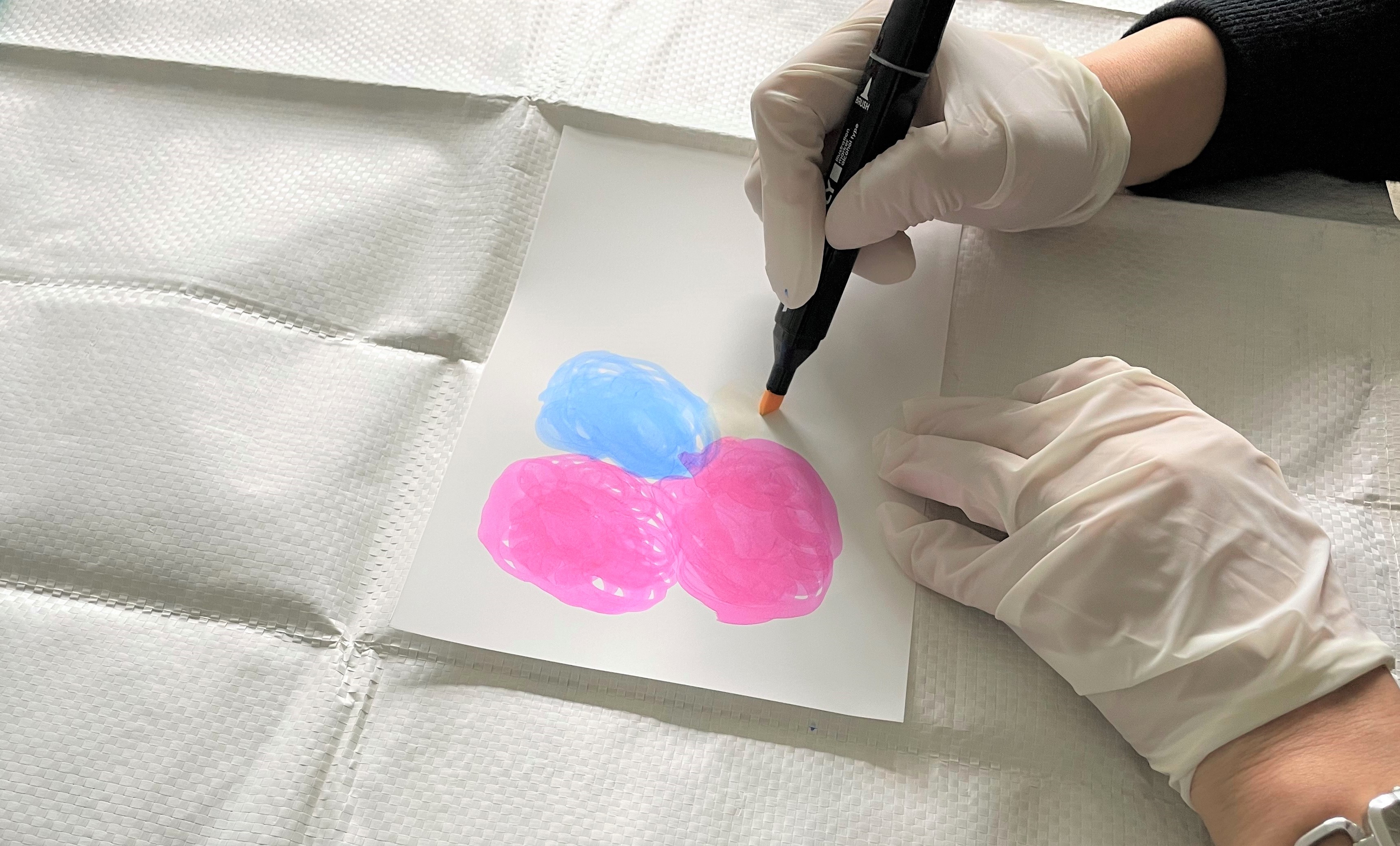 ・アルコールやインクで手荒れを防ぐために使い捨ての手袋を使用しましょう。