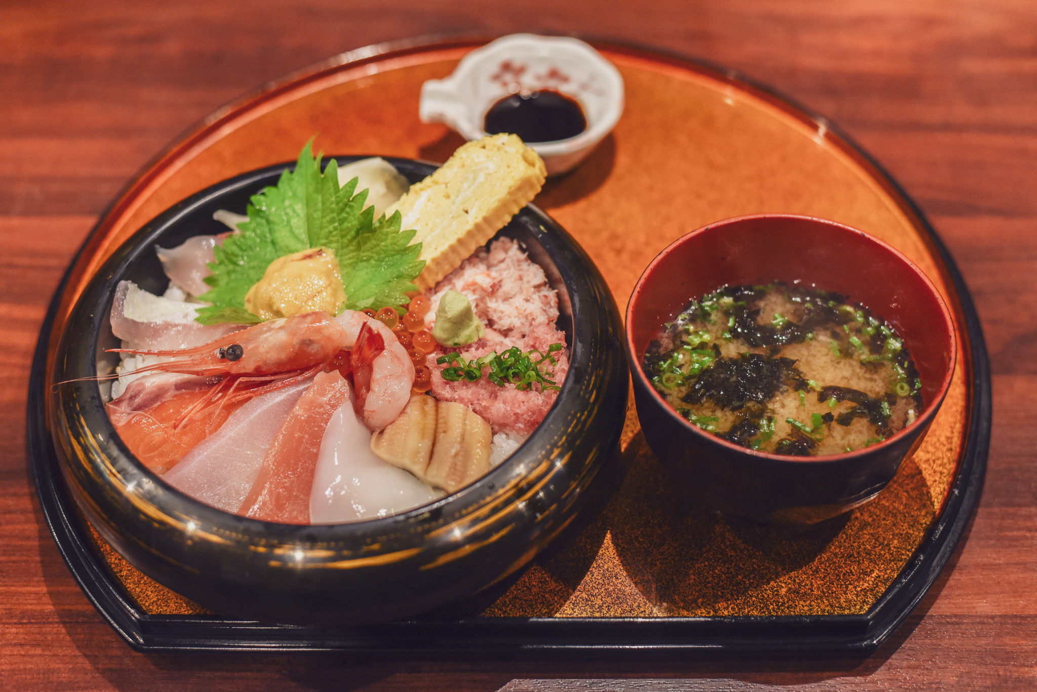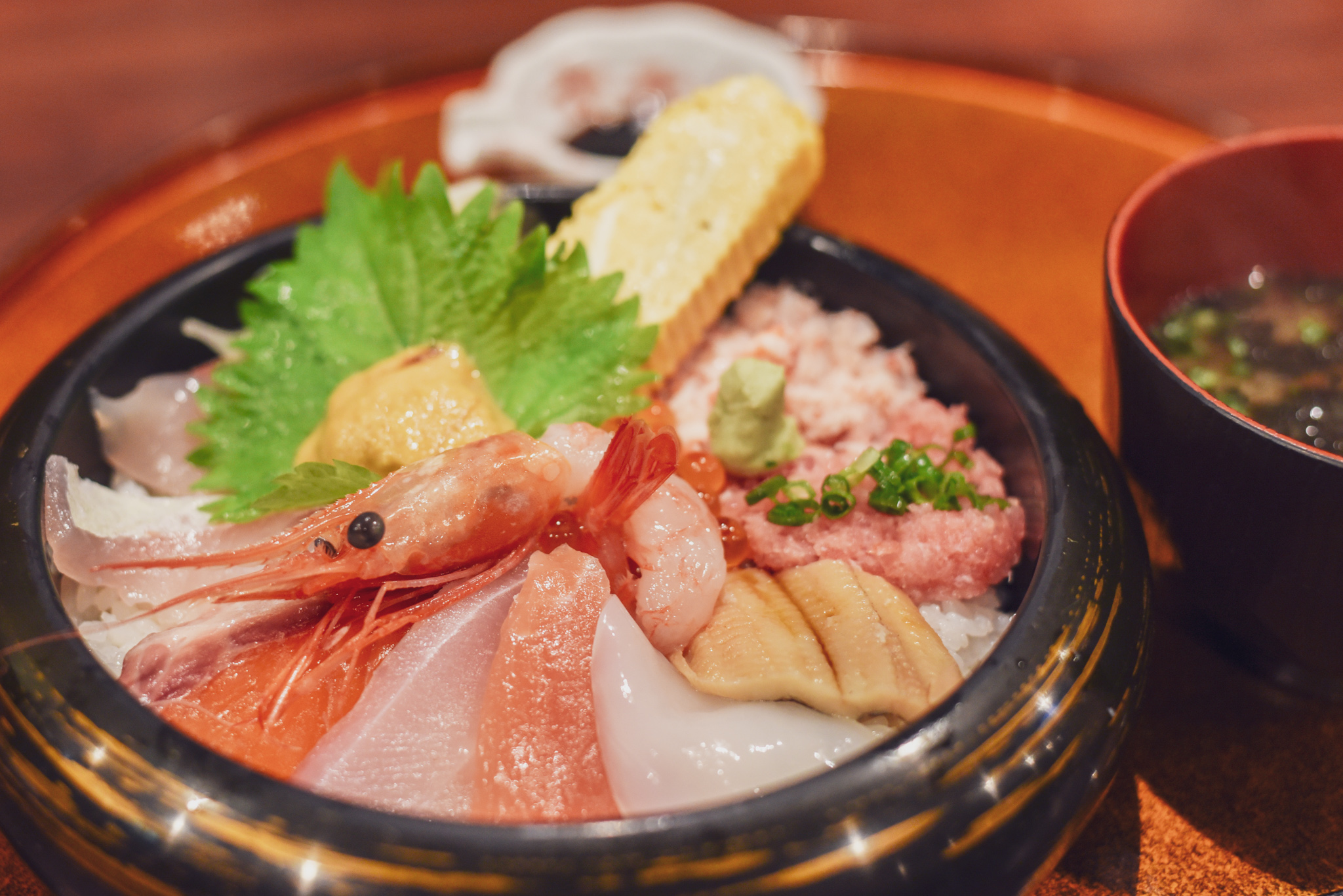 海鮮丼です~(((o(*゚▽゚*)o)))メニューには“市場のおいしさを丸ごとお届け”と!なんてステキな響き♪そしてぷりっぷりのエビの周りはアナゴにウニにいくらにサーモンに…キ、キレイすぎます!数種類の海鮮たち。口元がゆるみます!