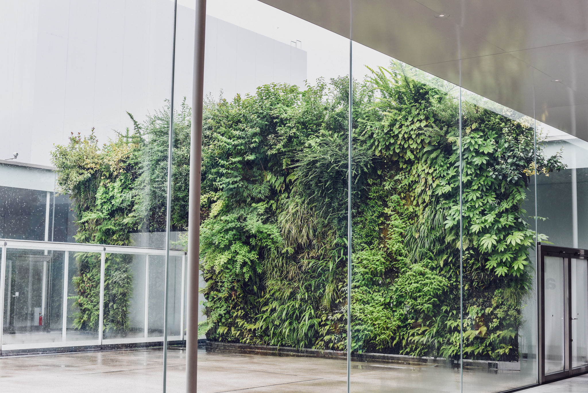 わずか14センチの厚さの壁の両面に、金沢の気候に適した約100 種類の植物が植えてあります。限定的な環境のもとでも植物は順応していくという、植物学者ブランの理論を作品そのものが示しているそうです。