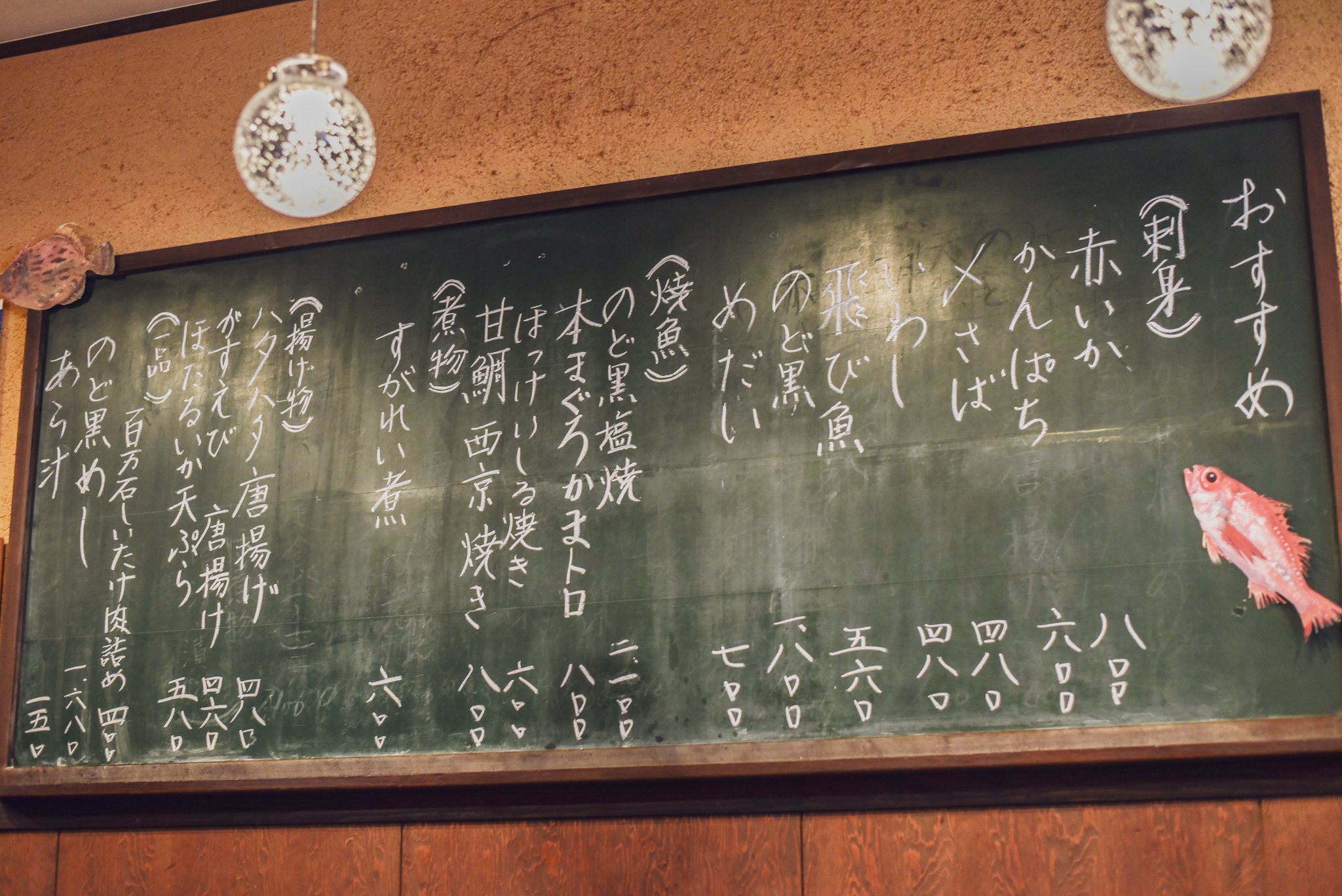 店内の黒板には毎朝仕入れる鮮魚。その日の1番おすすめが書いてあるそう。