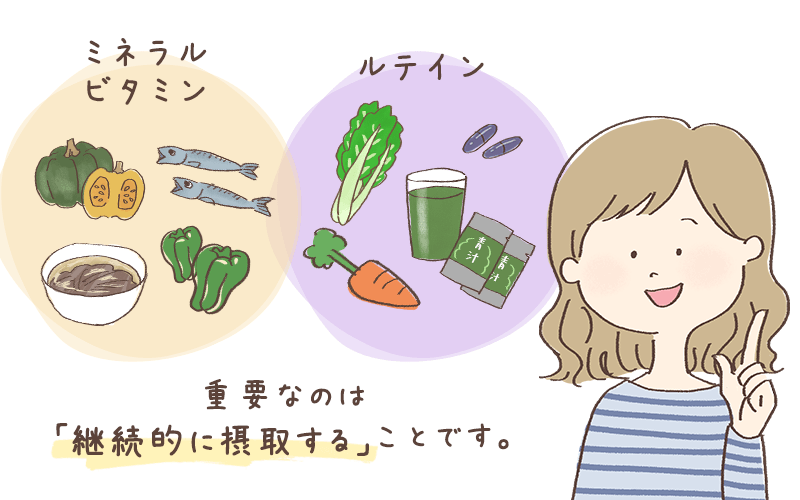 毎日の食事で常にルテインを意識するのは大変です。ときには青汁やサプリメントを使って上手に補うのも、ひとつの方法です。