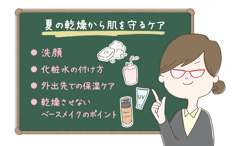 肌が乾燥しやすい夏こそ、乾燥を防ぐスキンケアが重要です。簡単にできる自宅ケアと外出先でのケア方法をご紹介します。