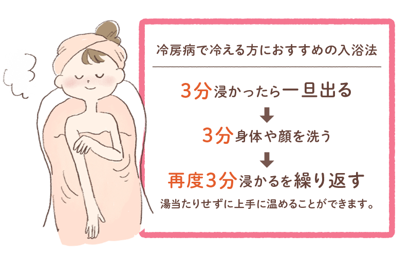だるさを感じるときは、体を外側から温めると良いでしょう。 夏は暑くてシャワーで済ませる人が多いですが、なるべく湯船に浸かるようにしましょう。 湯船に浸かってみると、手足の先が冷えているのを実感すると思います。 続いて、冷房病で冷える方におすすめの入浴法をお伝えします。