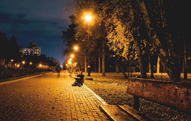 色づく木々が街灯に照らされる姿はまるでアート。秋の夜長は散歩の楽しみがいっぱい♪
