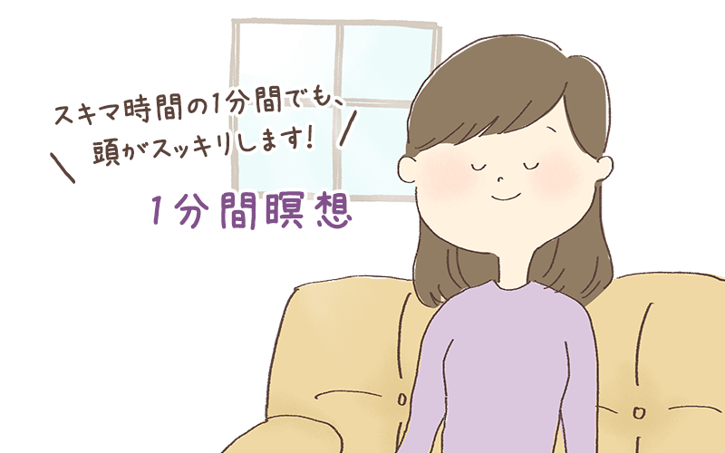 朝起きて家事に取りかかる前や、お子さんを送り出したあと、家事がひと段落したスキマ時間のタイミングにできる「1分間瞑想」がおススメです。