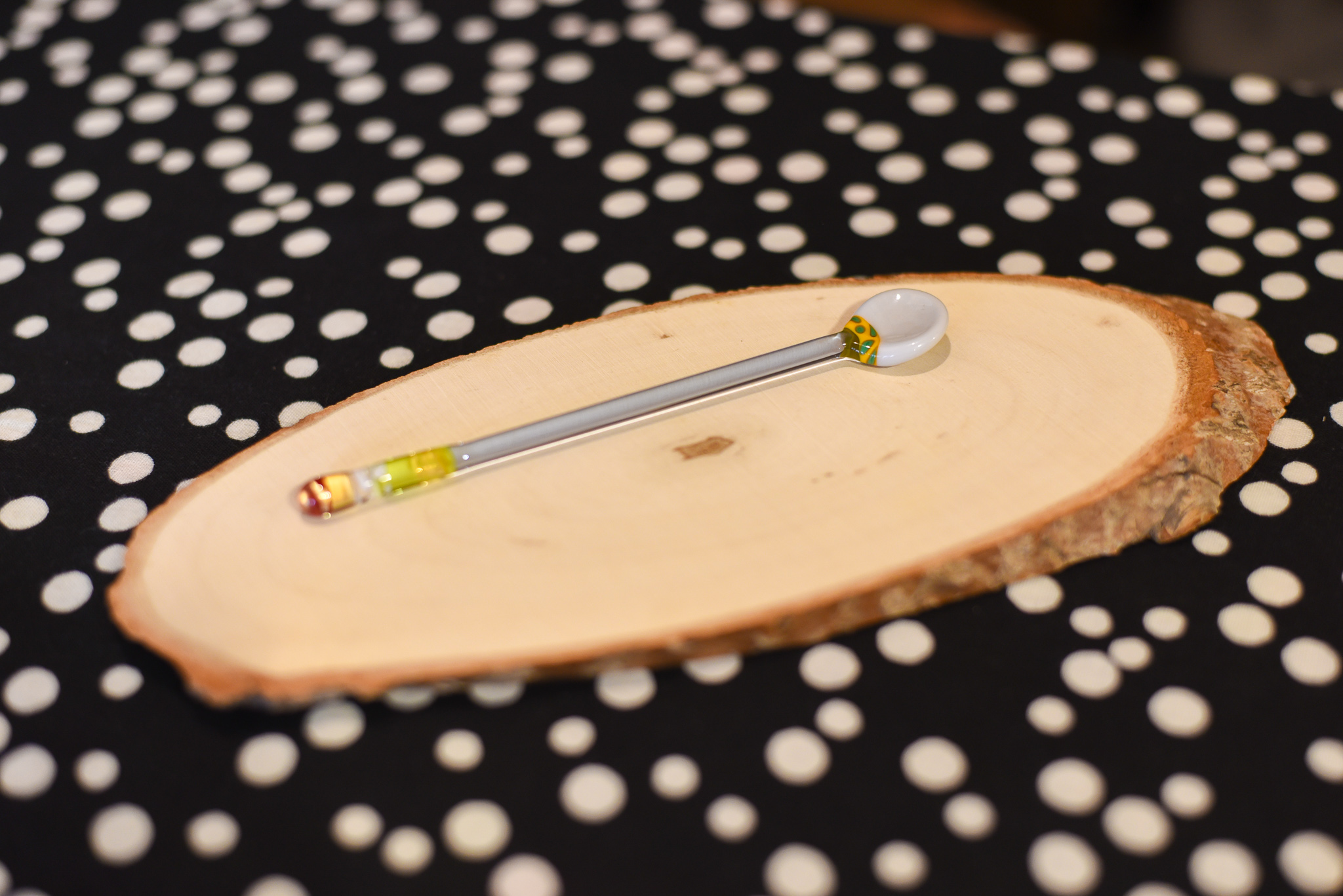 ガラスのキレイなティースプーンができあがりました!ちなみに池田はマドラーを作りました。