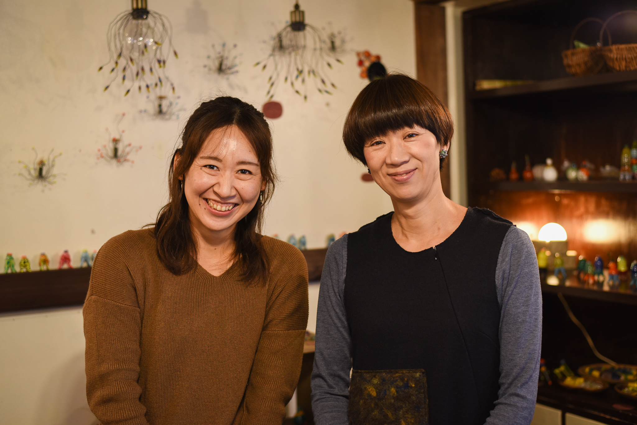 店内はキラキラとしたものからどっしりとしたものまで、数々のガラス細工がレトロ感いっぱいの店内に飾られています。
