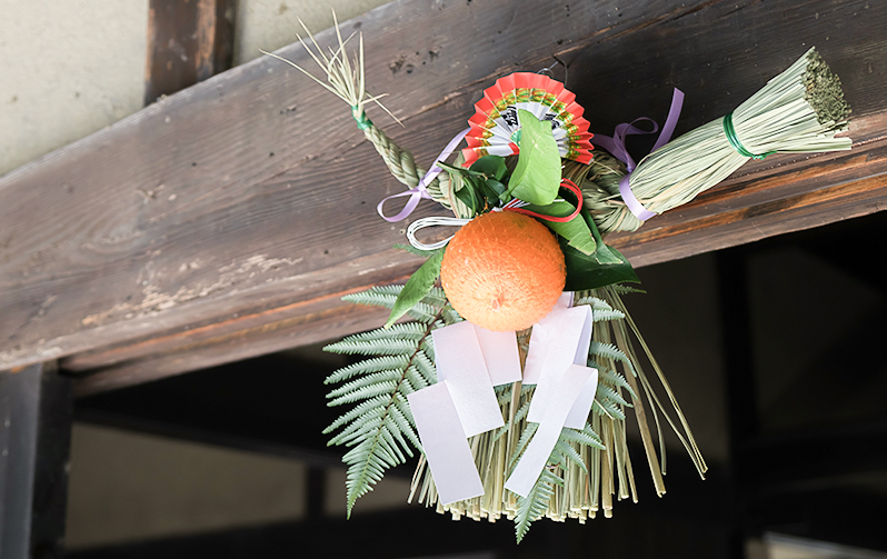 縁起物の付いたしめ縄は「しめ飾り」と言われ、年神様を迎え入れられるよう玄関に飾るのです