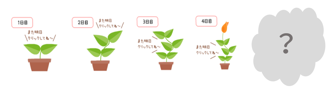 1日1回、鉢をクリックすると芽が成長していきます。