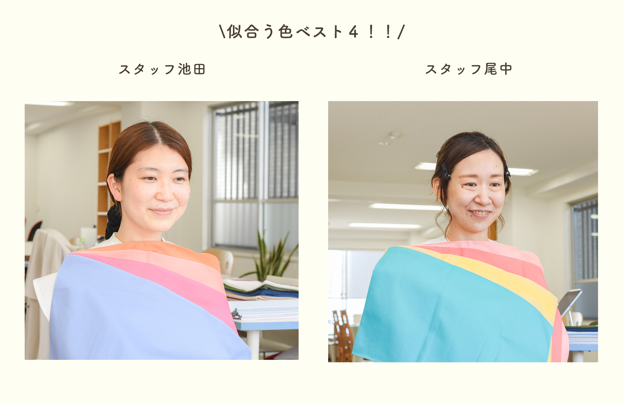 パーソナルカラーとはその人が生まれ持った肌や目、髪色、血色になじんで、雰囲気が調和する色(=似合う色)のことです。パーソナルカラーを知り、服やアクセサリーに取り入れることで、顔色が明るくなったり印象が変わることもあるそうなんです。