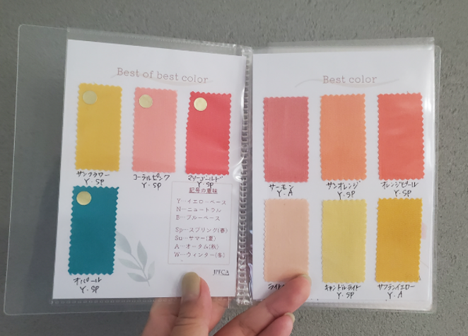 後日こんなステキなカラーブックが届きました。ていねいに似合う色を1冊の冊子にしてくださっています! うれしすぎます~。