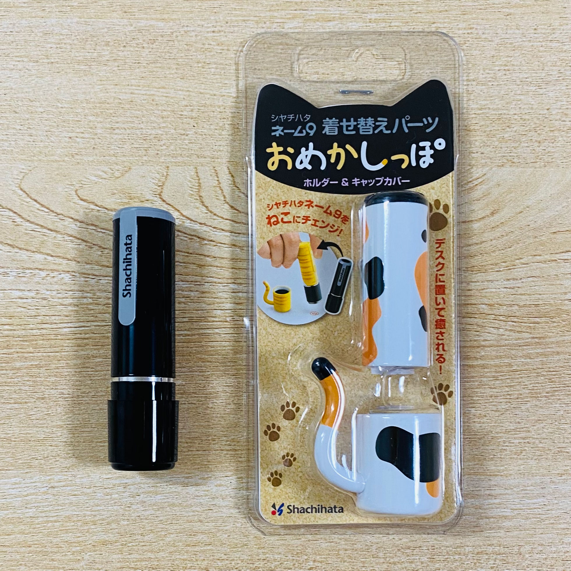 書類の確認に、宅配の荷物を受け取る時にと、押す機会がまだまだあるネーム印。味気ないネーム印のボディをネコ柄におめかしできるのがこの「おめかしっぽ」。これは自分のもの!とすぐに分かるのもありがたいです。あれ?ハンコどこにいったかな?問題も解決してくれそう。