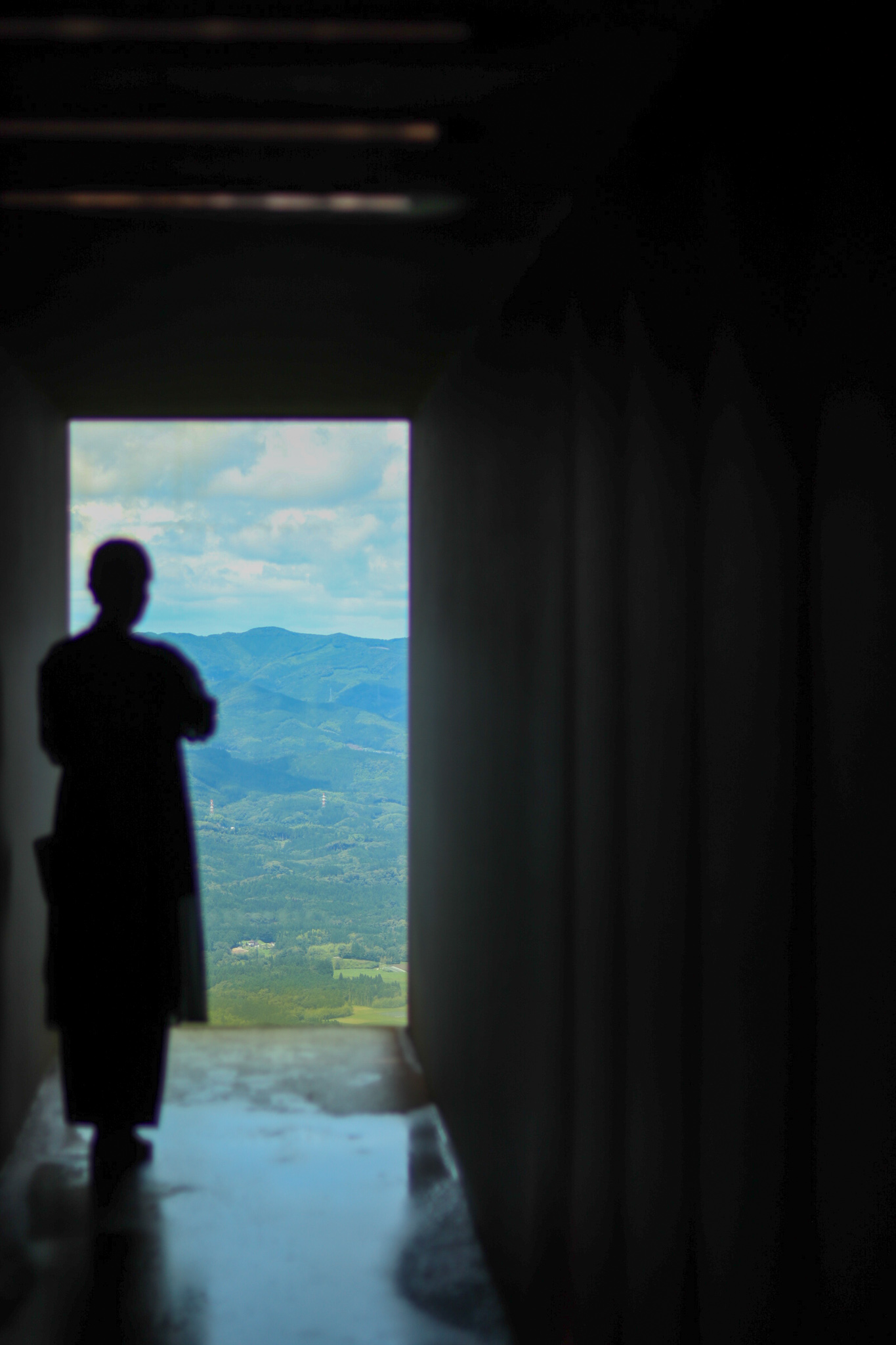 すべてが絵の額縁のようになっている。霧島の風景もスタッフの村上も、覗いて見るとすべてが絵になります。どの額縁でのぞくかで色々な景色が見えて楽しいです♪
