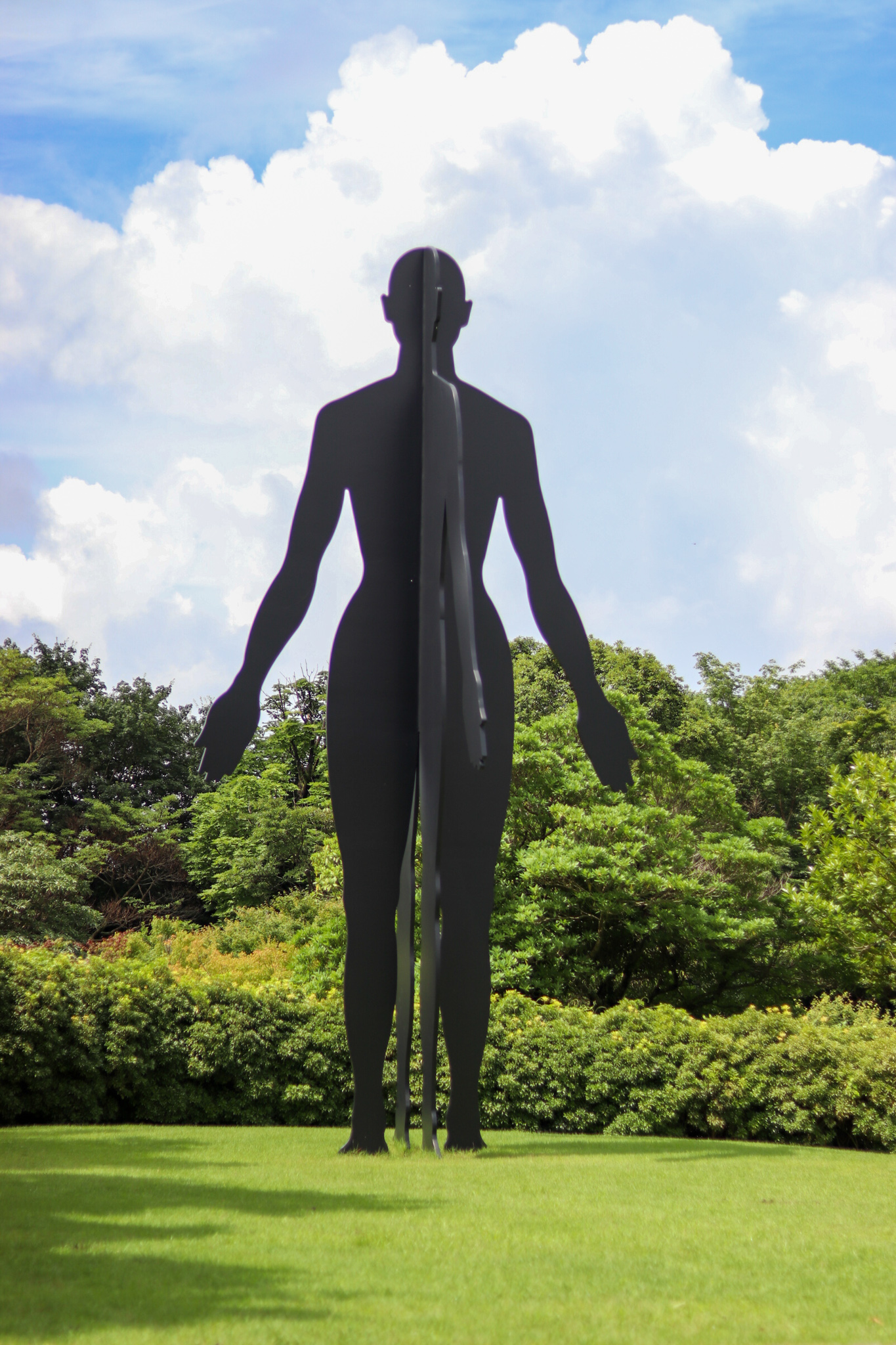 正面に見えたのが男女が交差するようにできている巨大なシルエットです。太陽の向きで影が変わり、男女の姿がそれぞれ浮かびあがる工夫がされているそうです。太陽や8mほどの高さを活かすのは野外展示ならではですね!