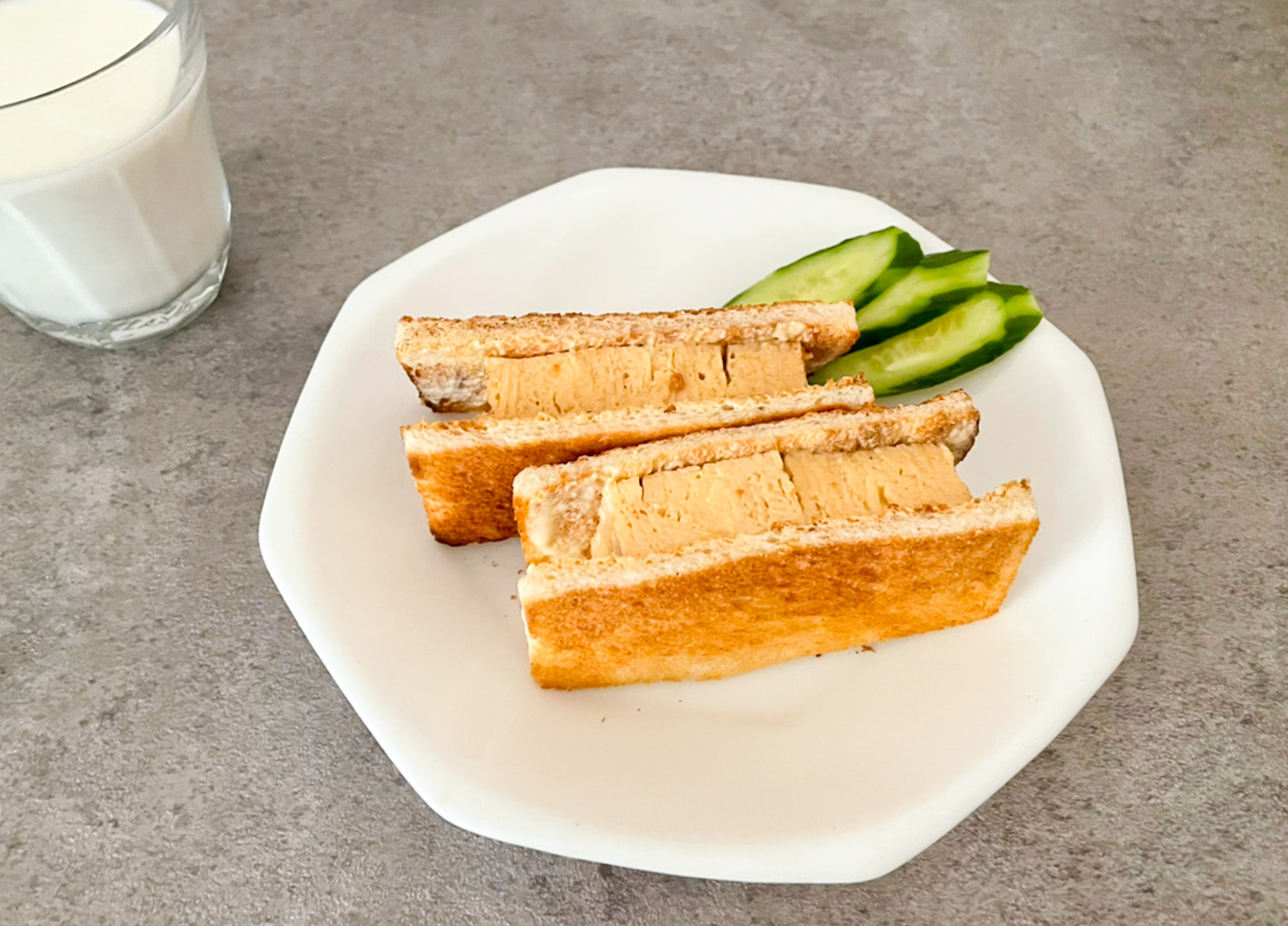 トーストしたパンにマヨネーズを塗って簡単たまごサンドの出来上がり♪