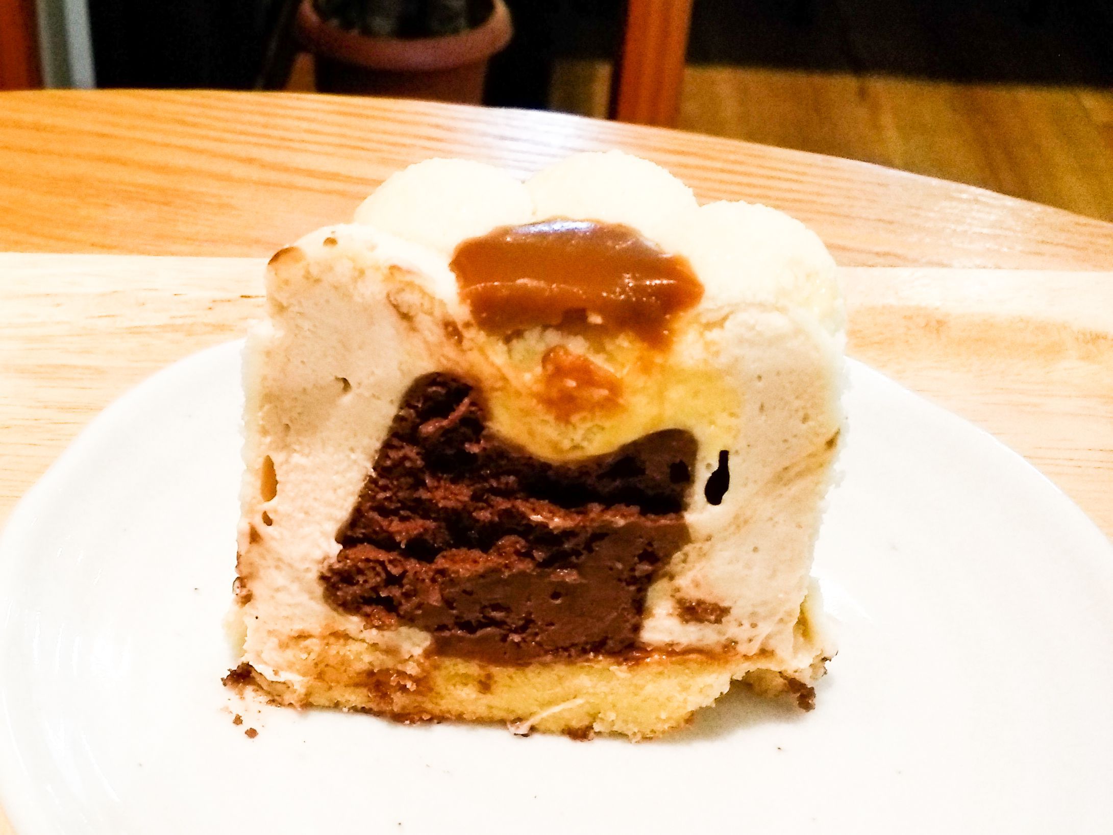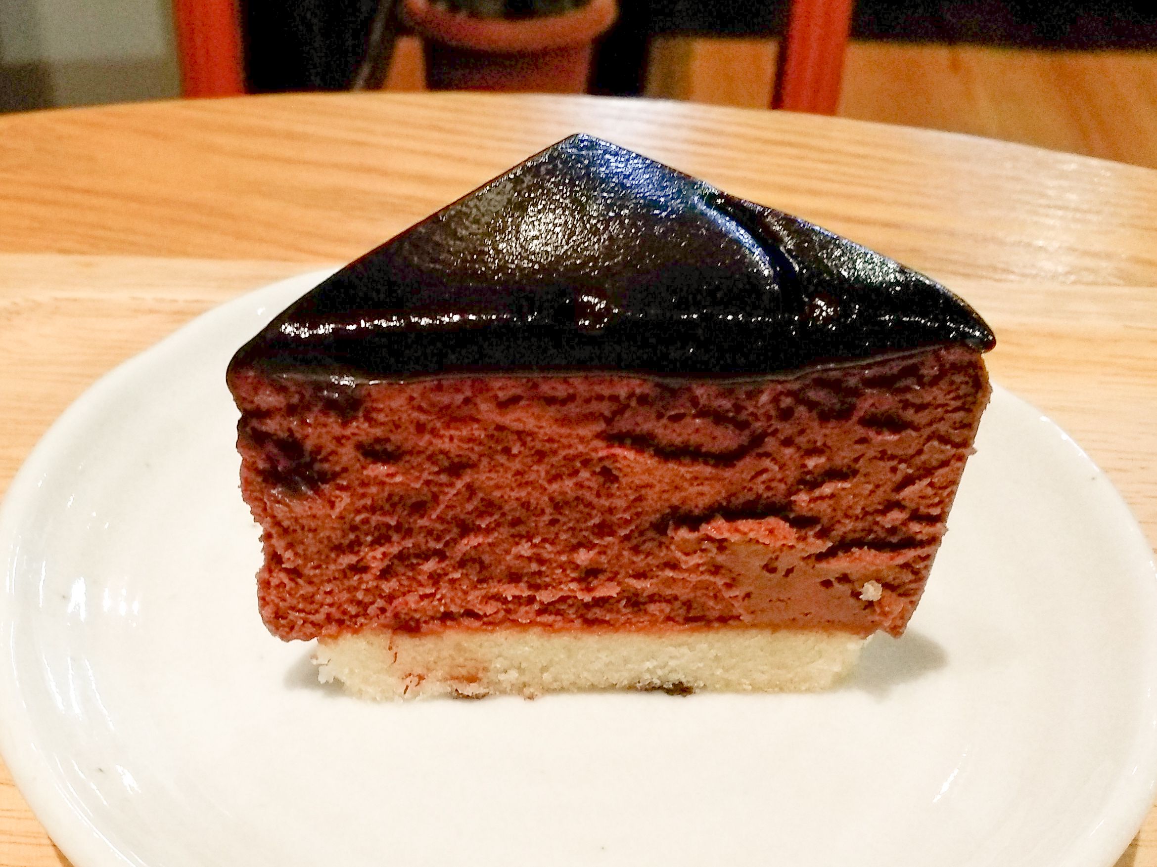 濃厚なビターチョコレートに酸味のきいたカシスソースがアクセントになっていて、下のフィナンシェ生地との相性も抜群☆