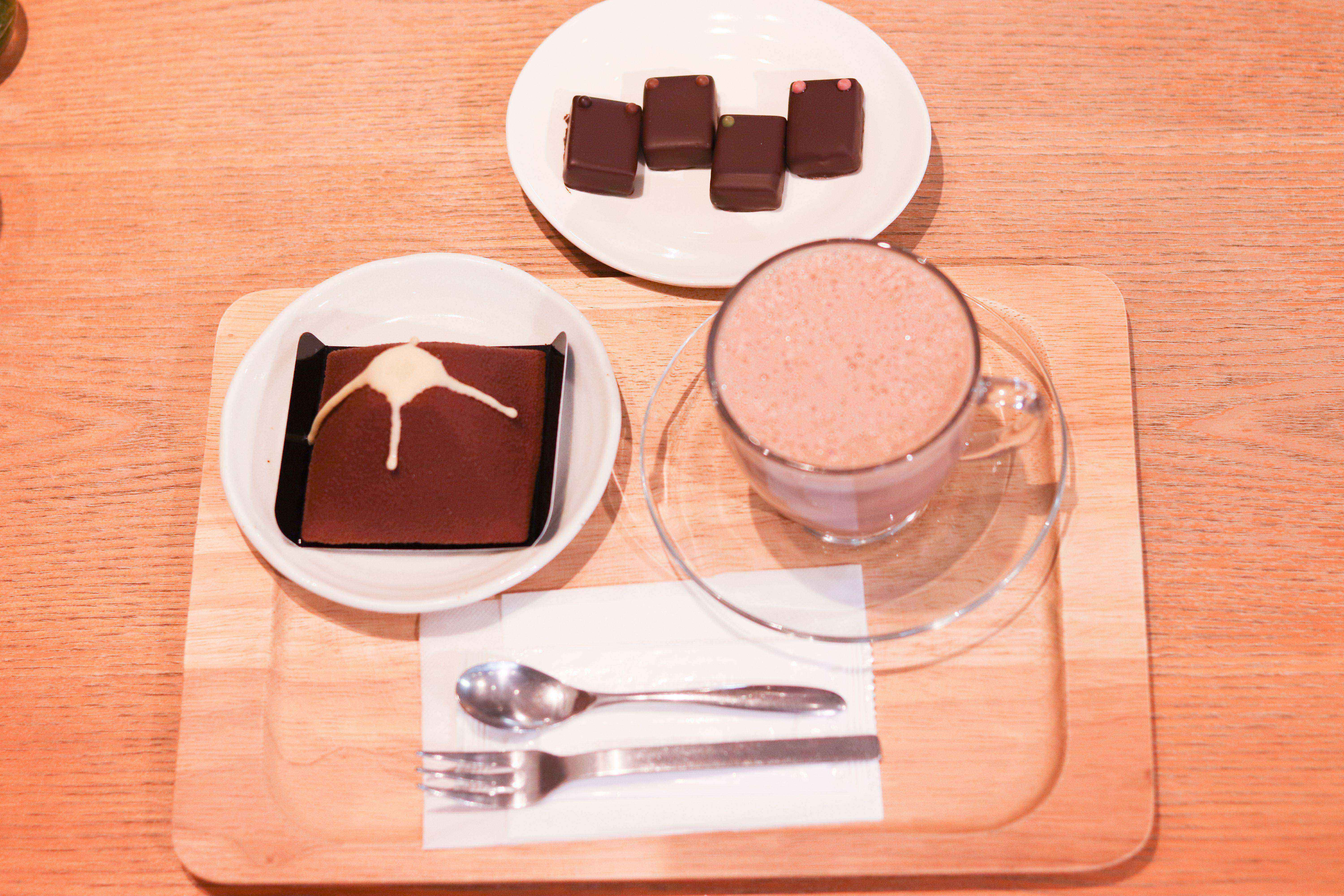 チョコレートドリンク・ケーキ・ボンボンドゥショコラの豪華なセットに♪