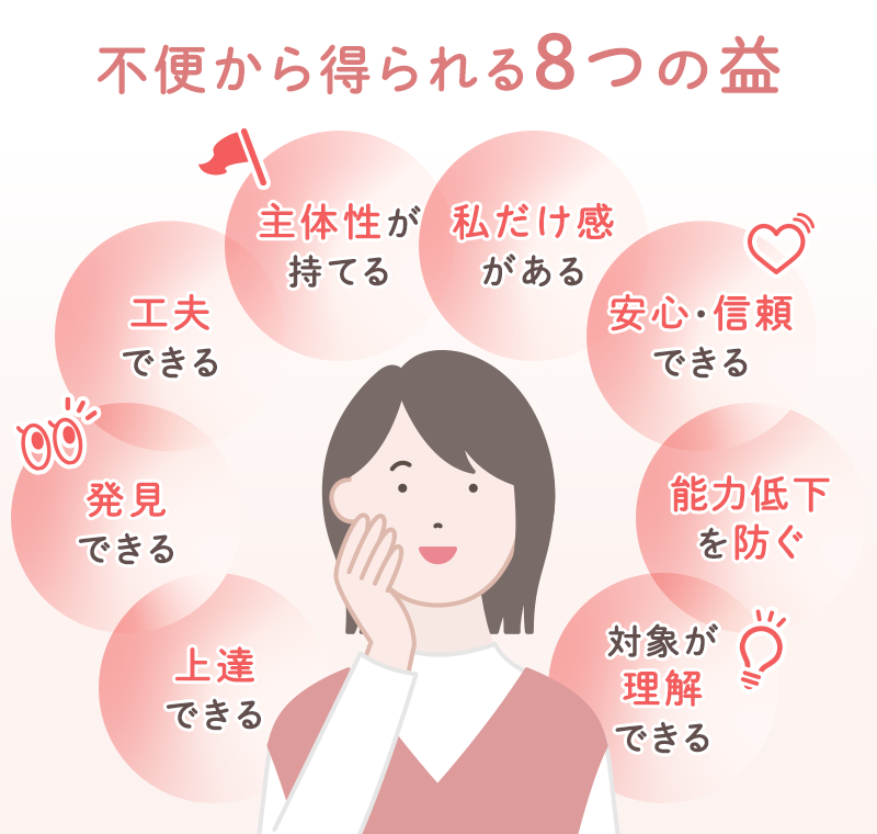 ちなみに調べてみると…不便から得られる益は8つもあるそう!