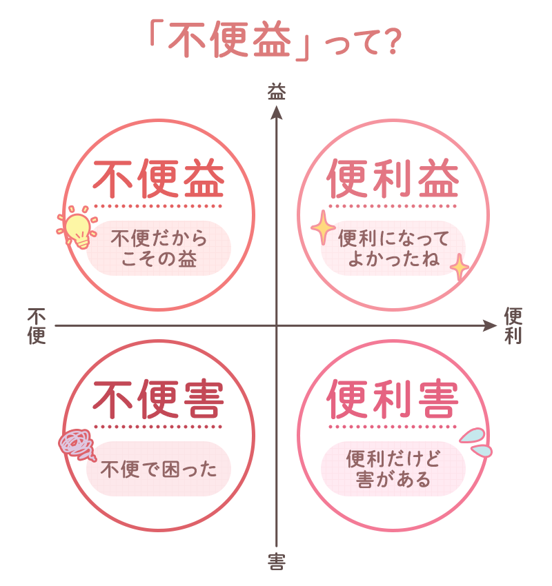 「不便益」という言葉の意味は“不便だからこそ良いことがある”。